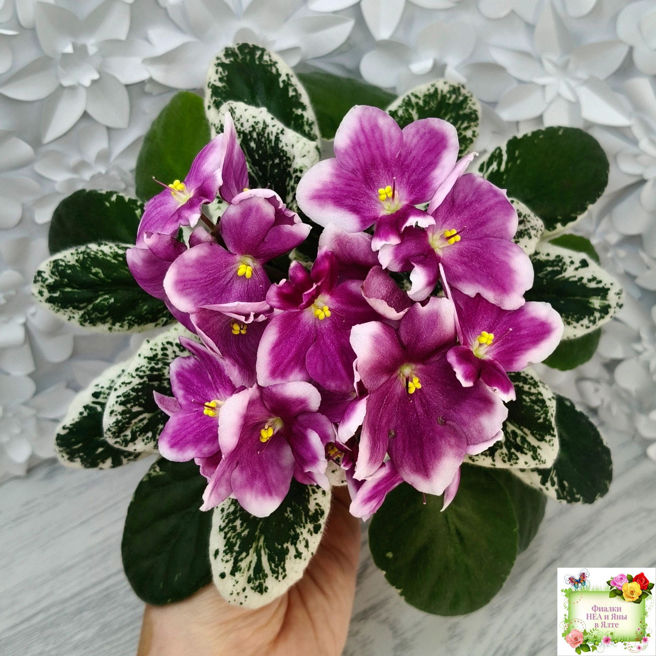 На пестрой розетке цветы от сорта Humako Flame!