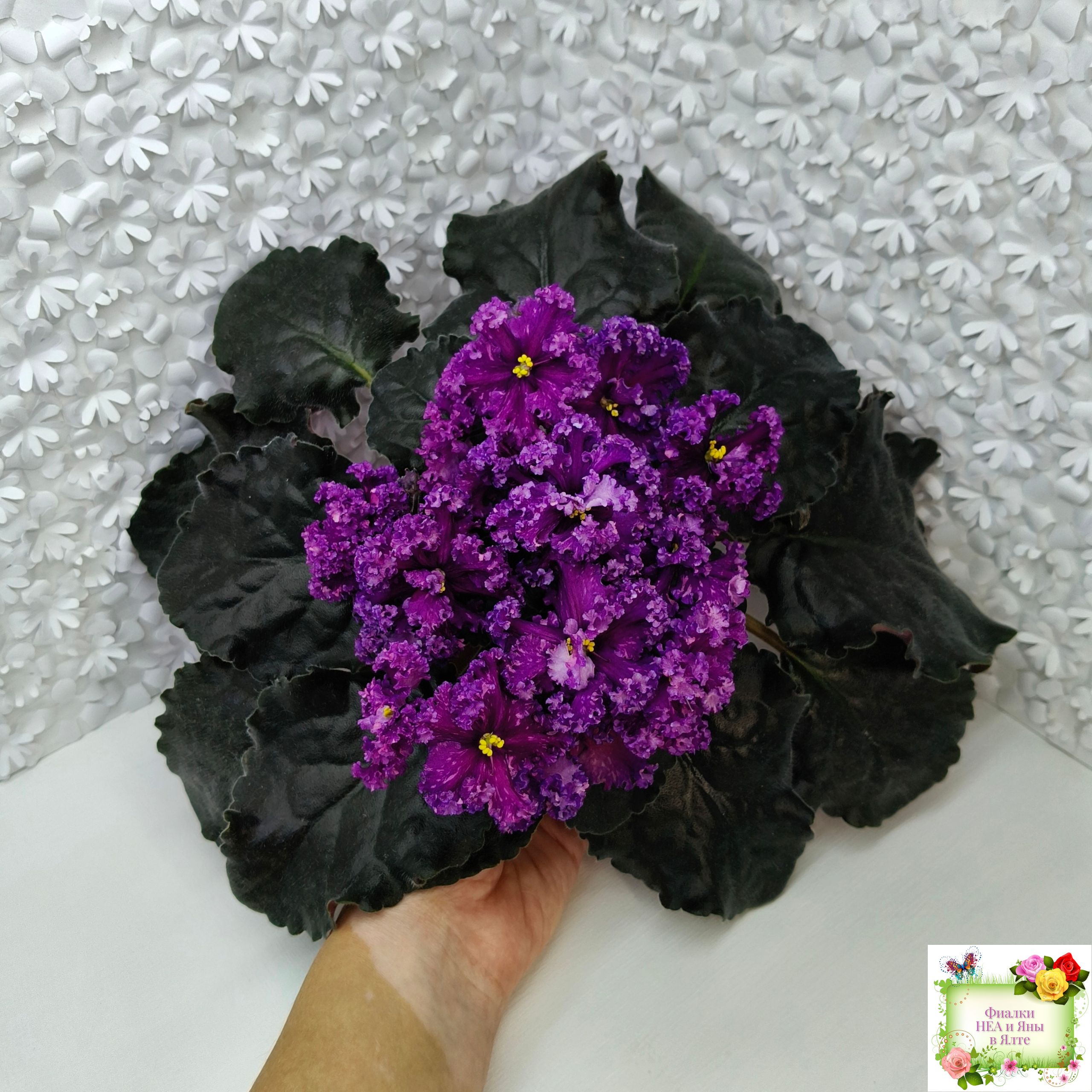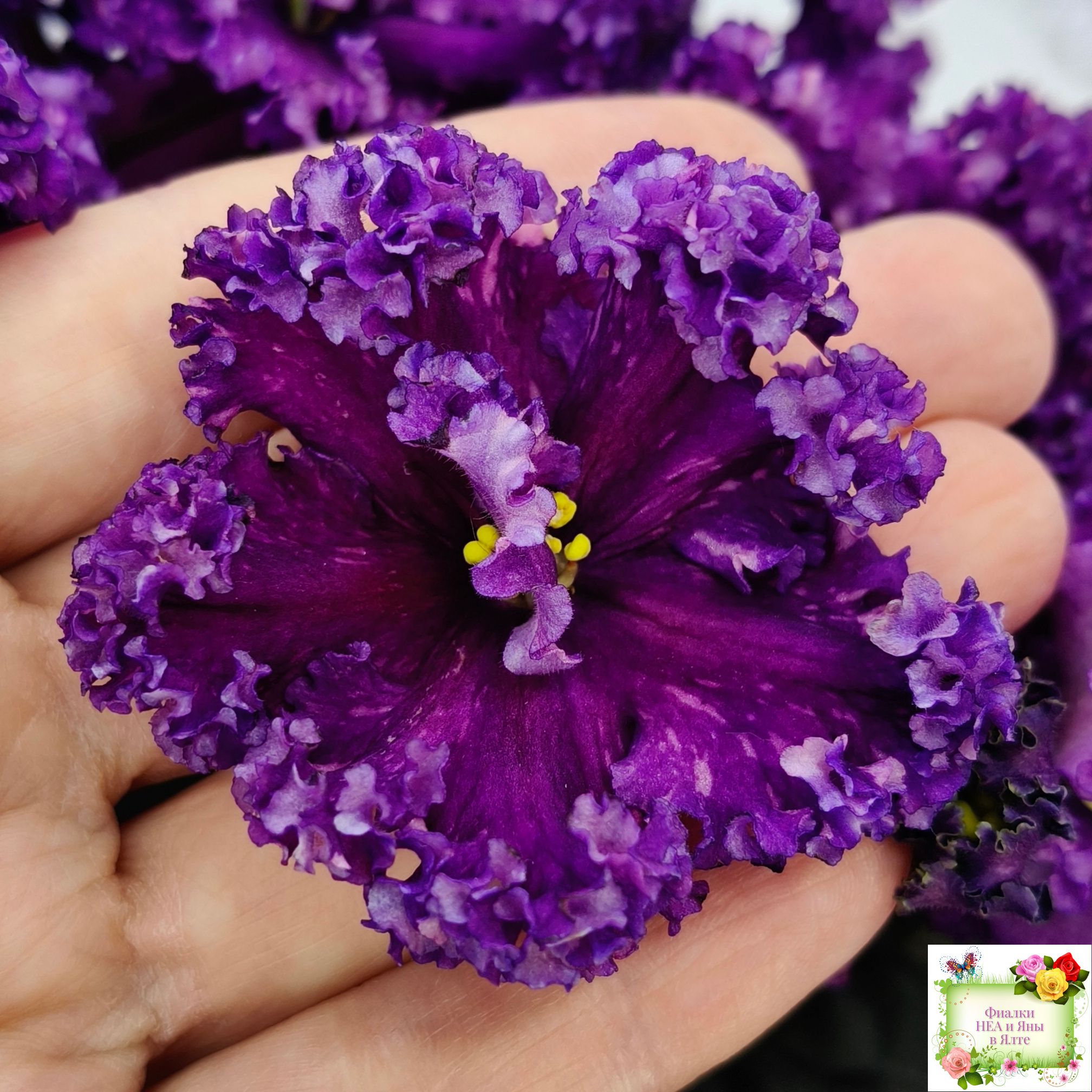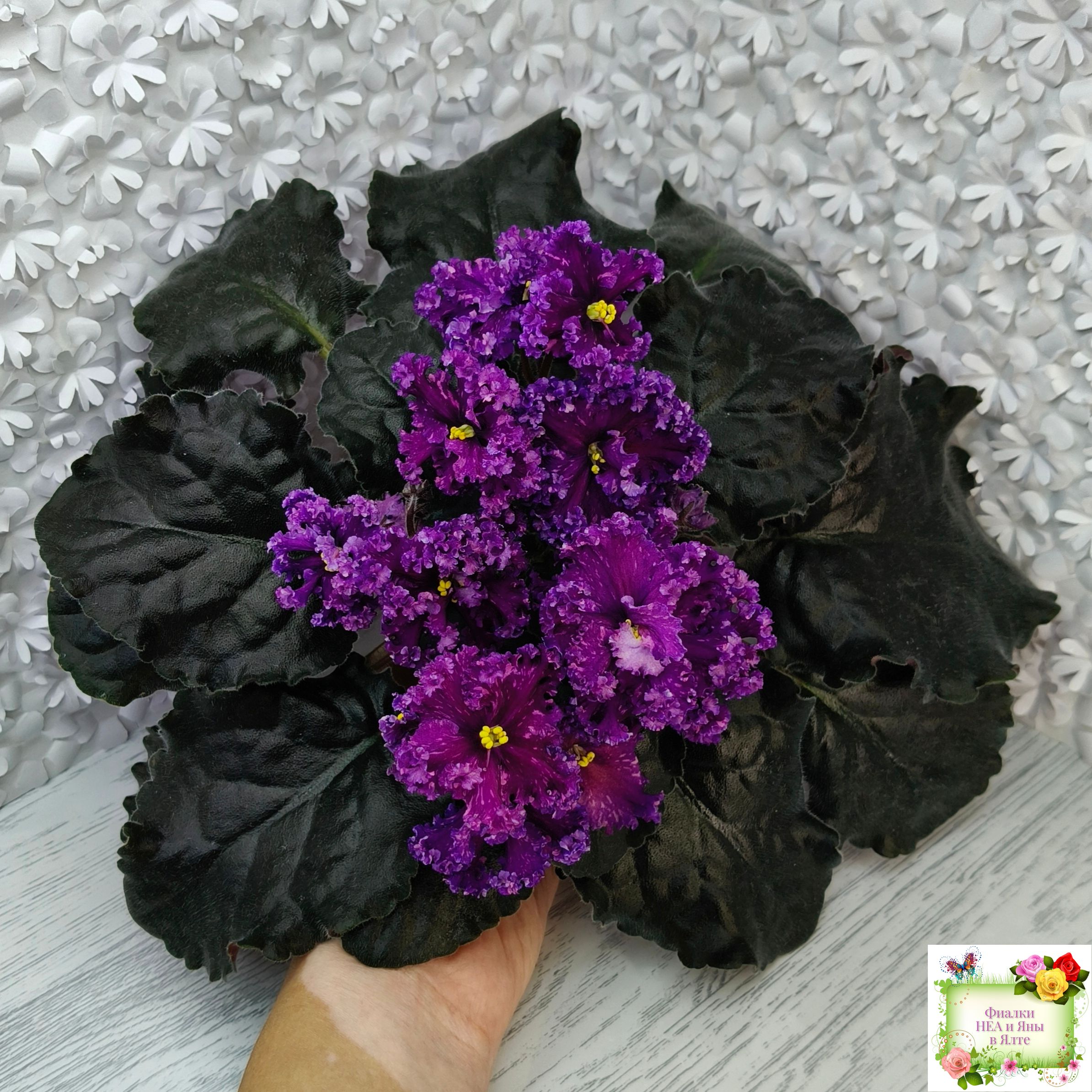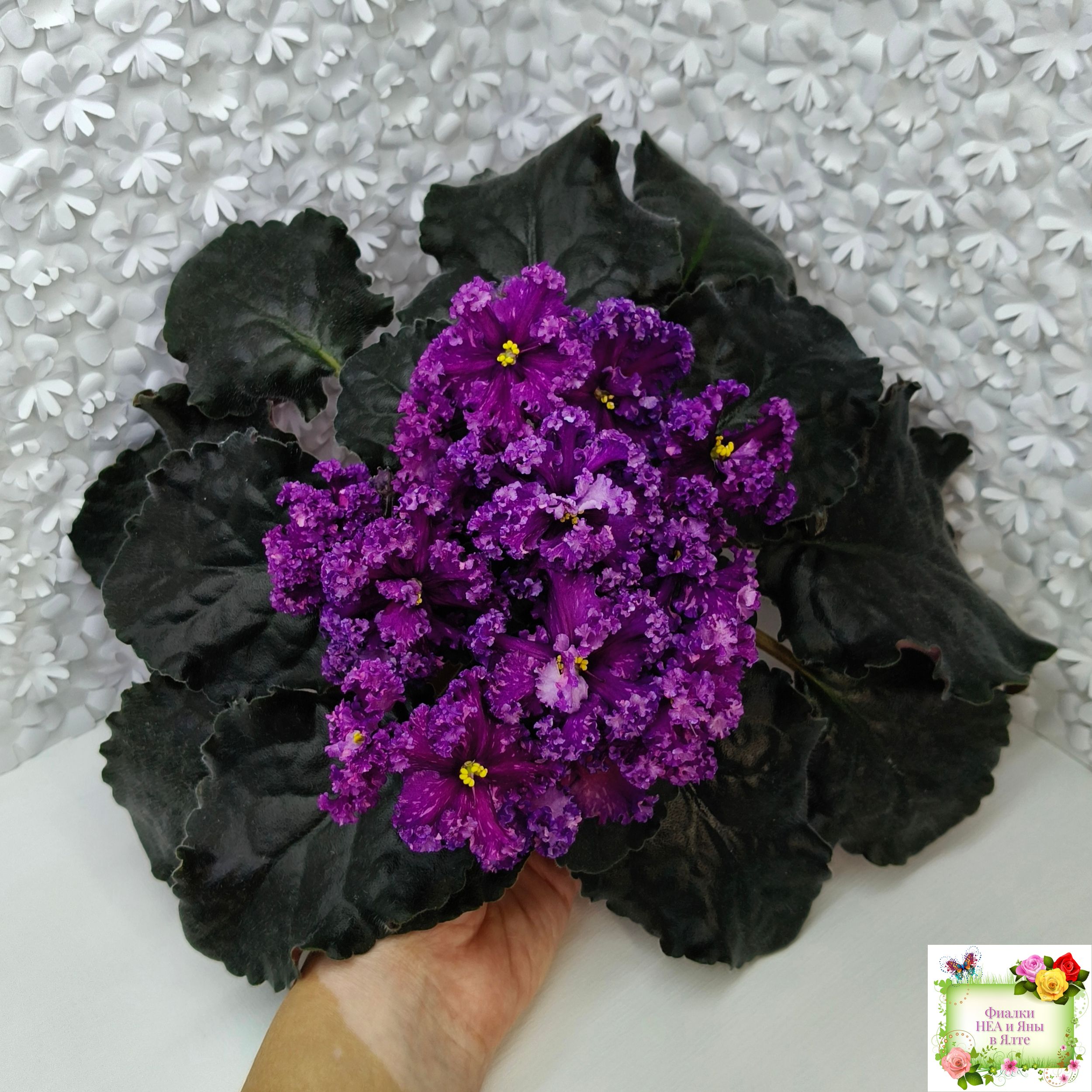 Цветок: Крупные темно-фиолетовые цветы с розовыми штрихами фетнази. Лепестки с густым рюшем.