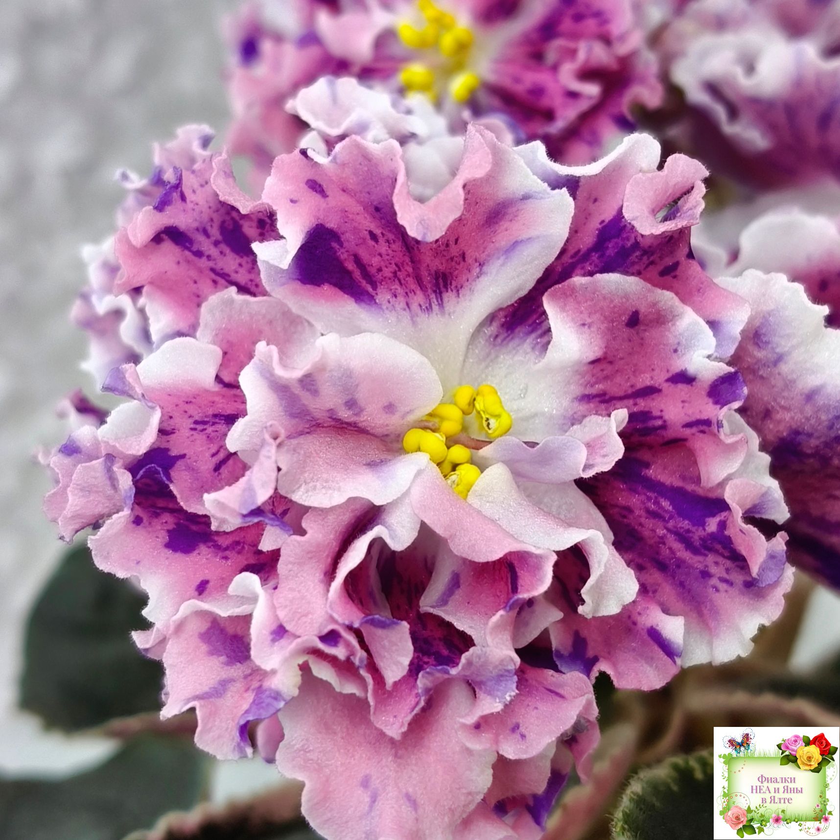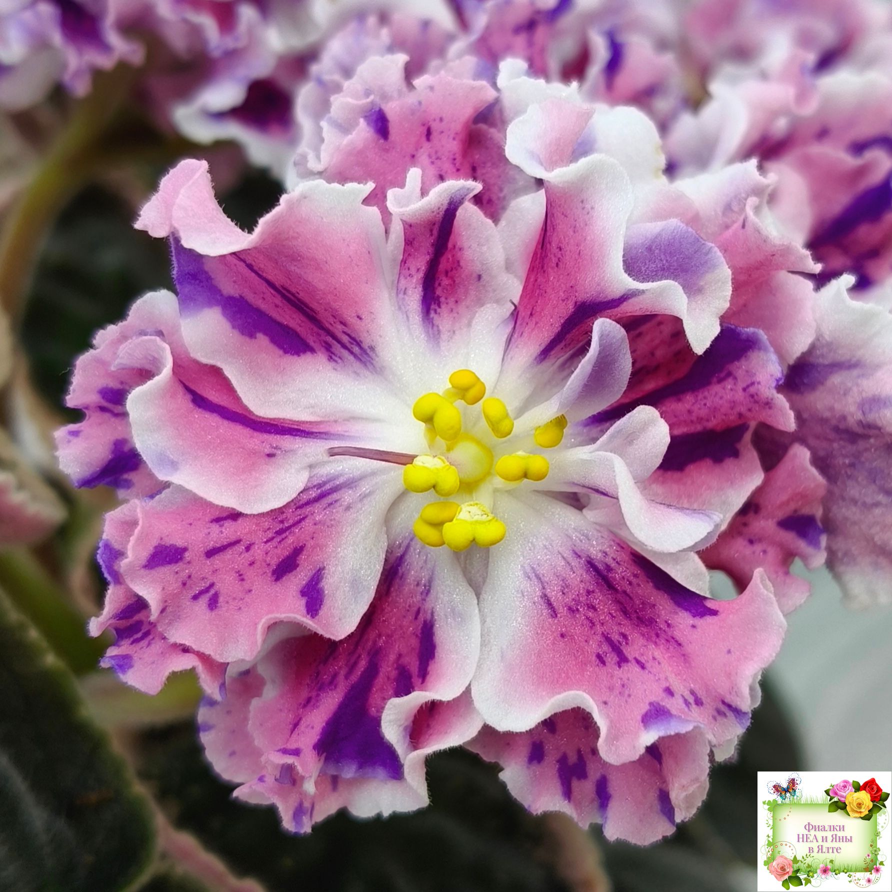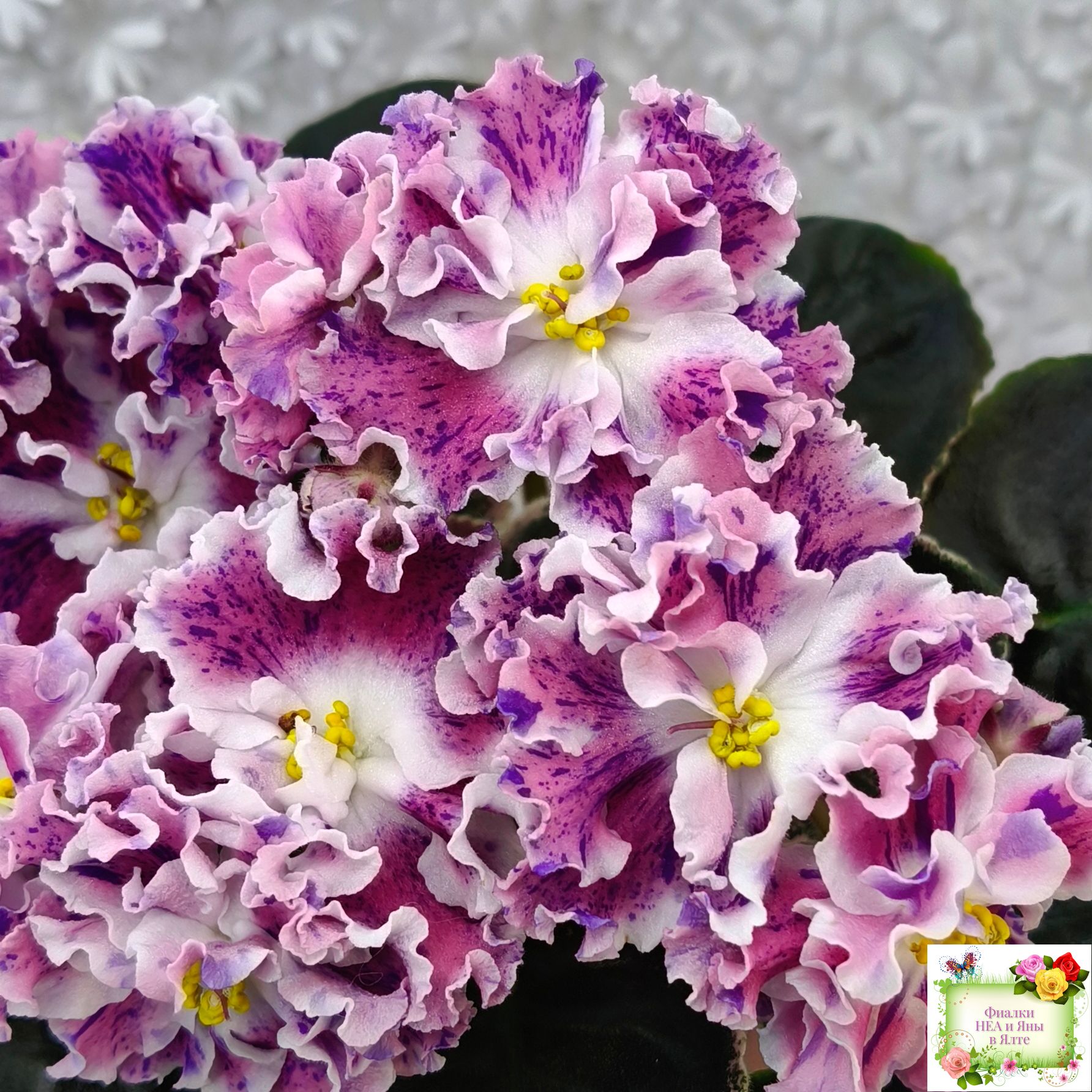 - Цветы: Белые цветы с яркими арбузными напечатками и с синим фэнтези по ним, волнистые края. Обильное цветение.