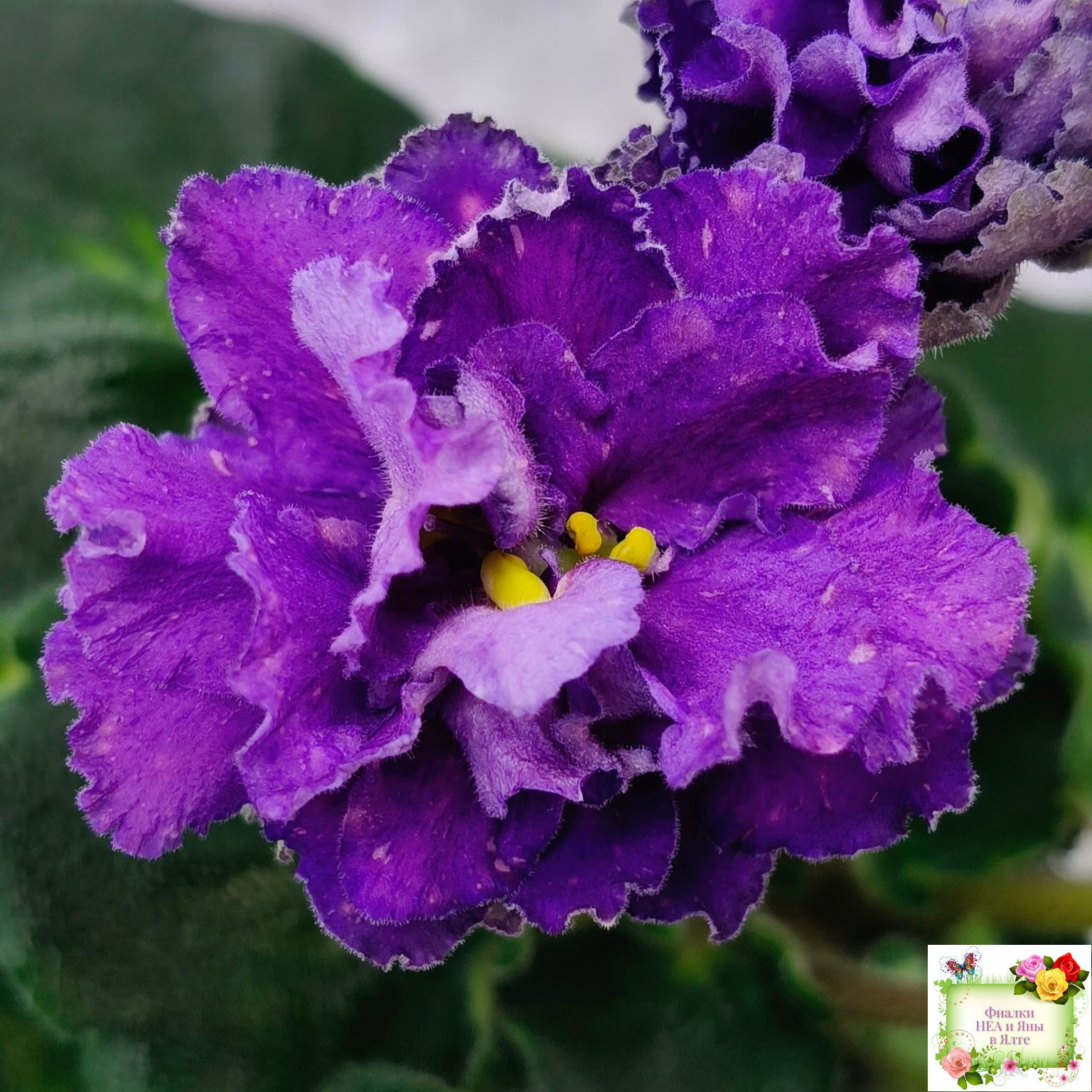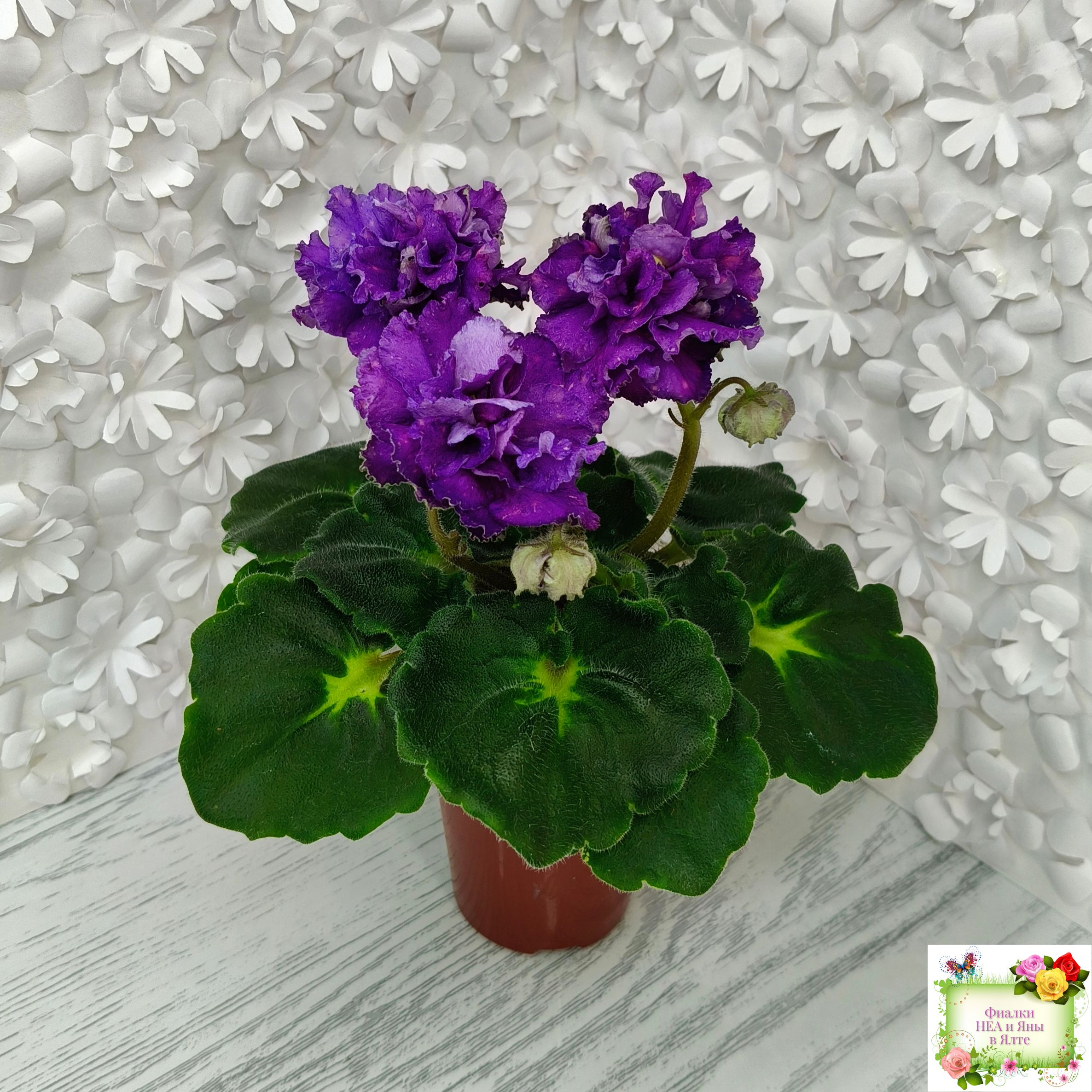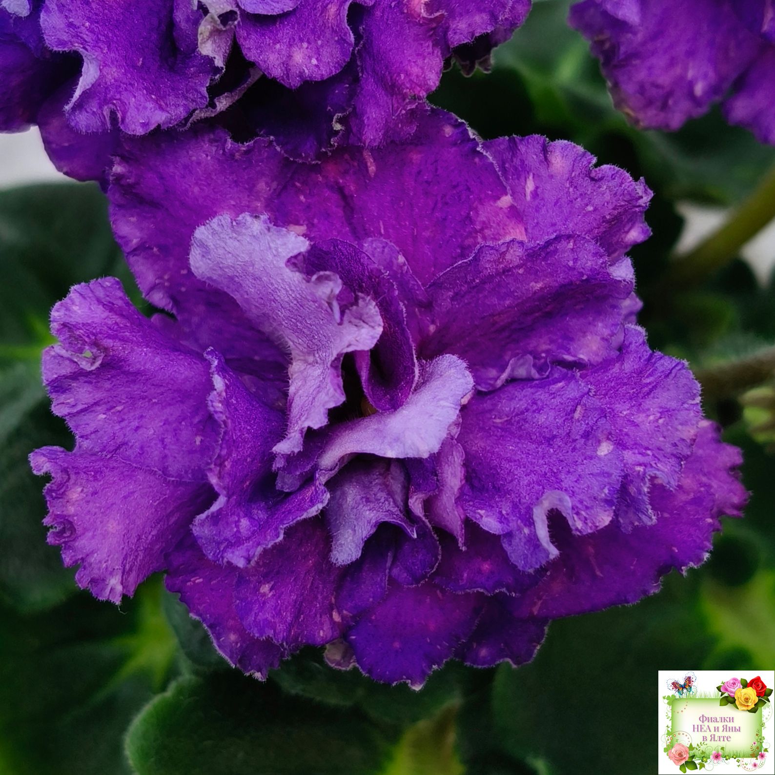 Средне-зеленый гёрл лист, светлая изнанка и черенок. Огромные, махровые индиго звёзды, двойное тёмно-фиолетовое и фуксивое фэнтази, вариабельный светлый кант по краю лепестков. Продолжительное обильное цветение. Малый стандарт.