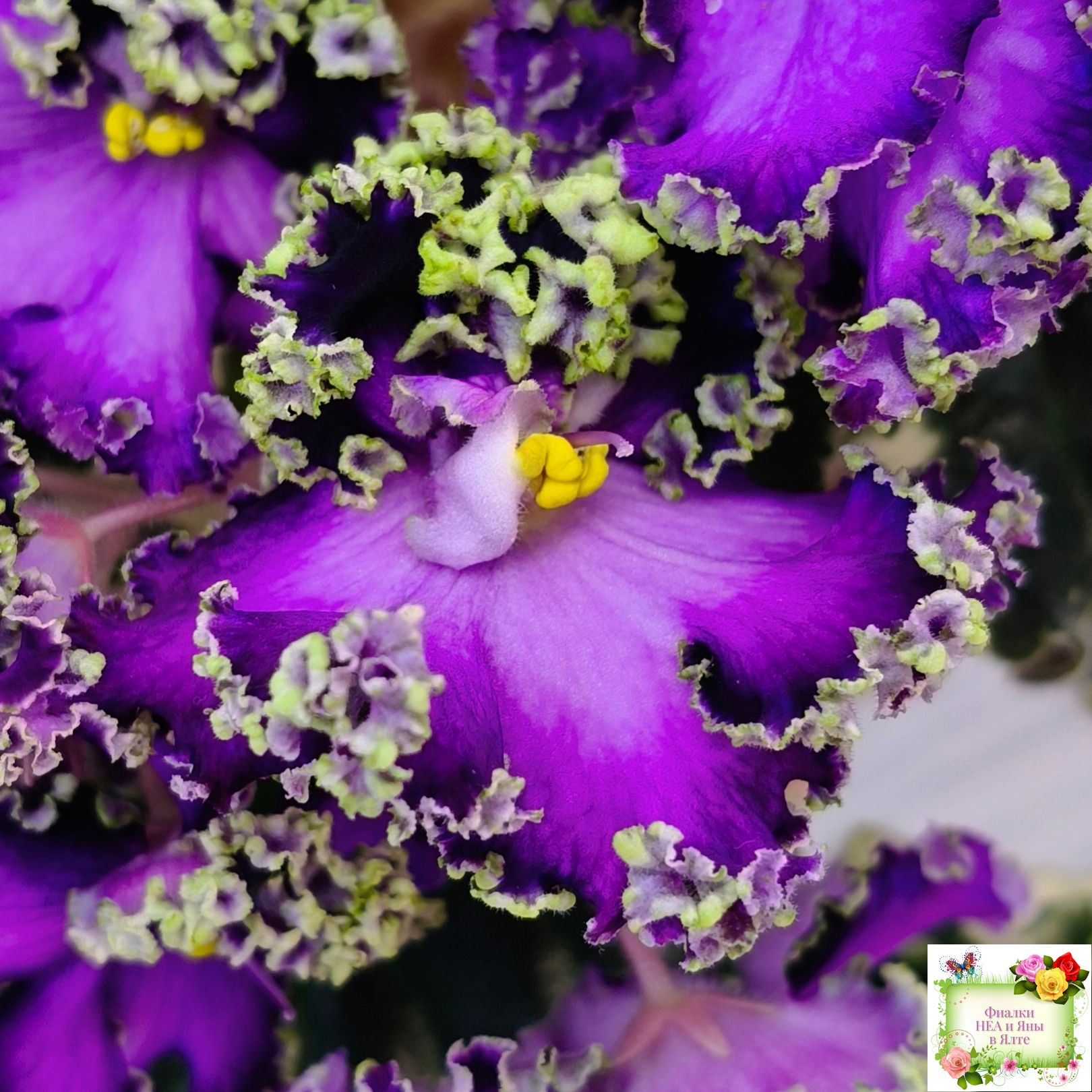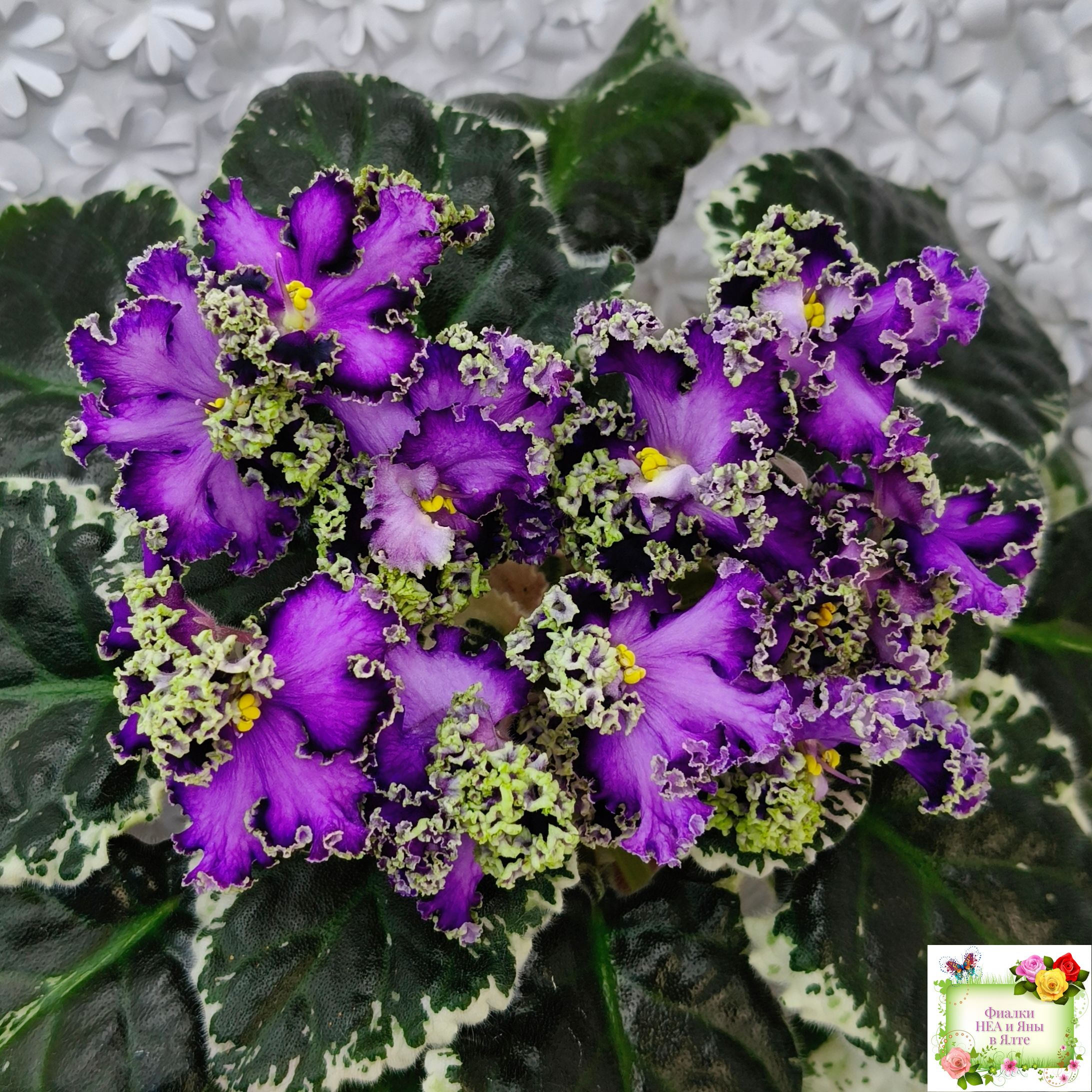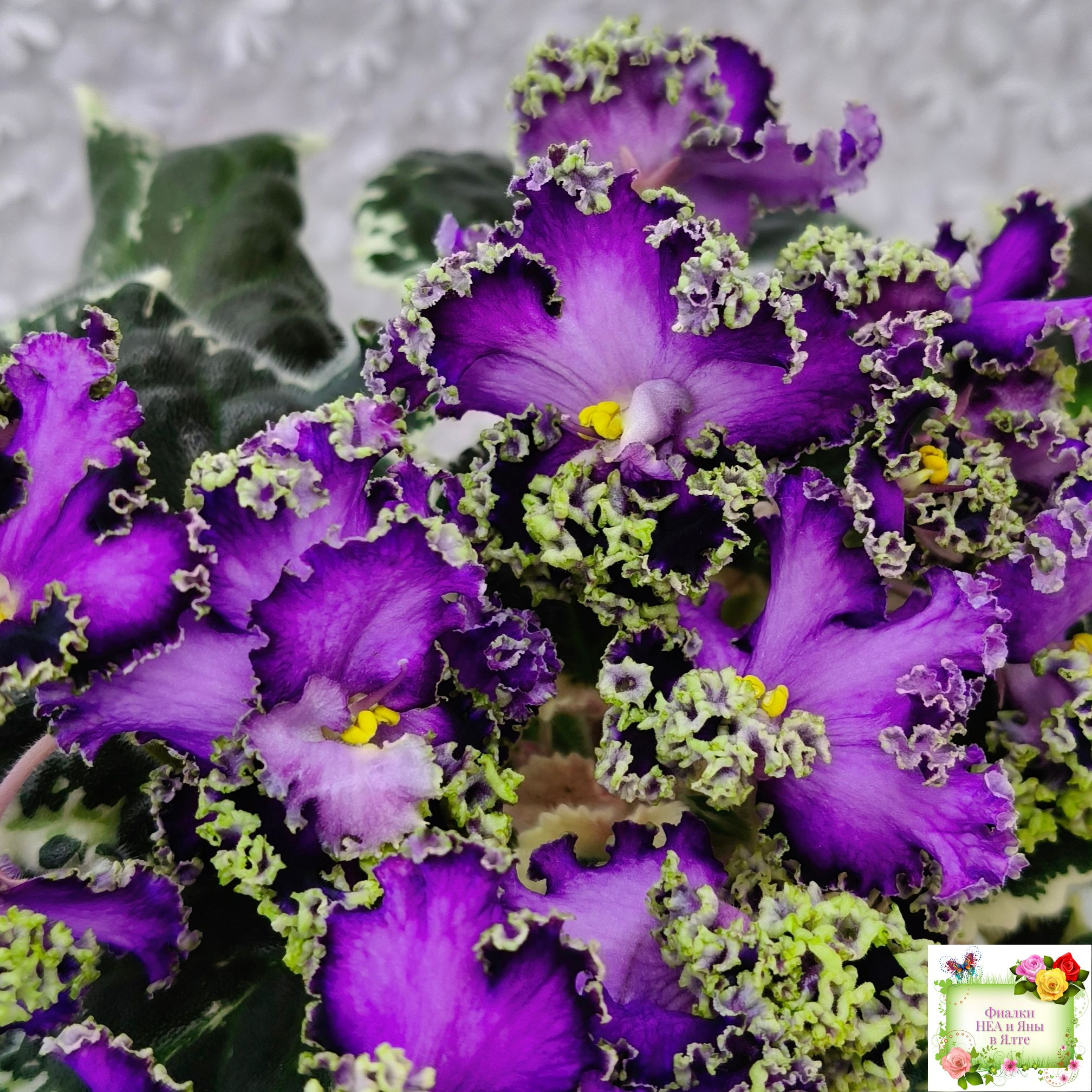 Нежно лавандовые анютки с бело-зеленоватой слегка гофрированной каймой и сгущением цвета под краями лепестков, пестролистник. (Описание сорта).