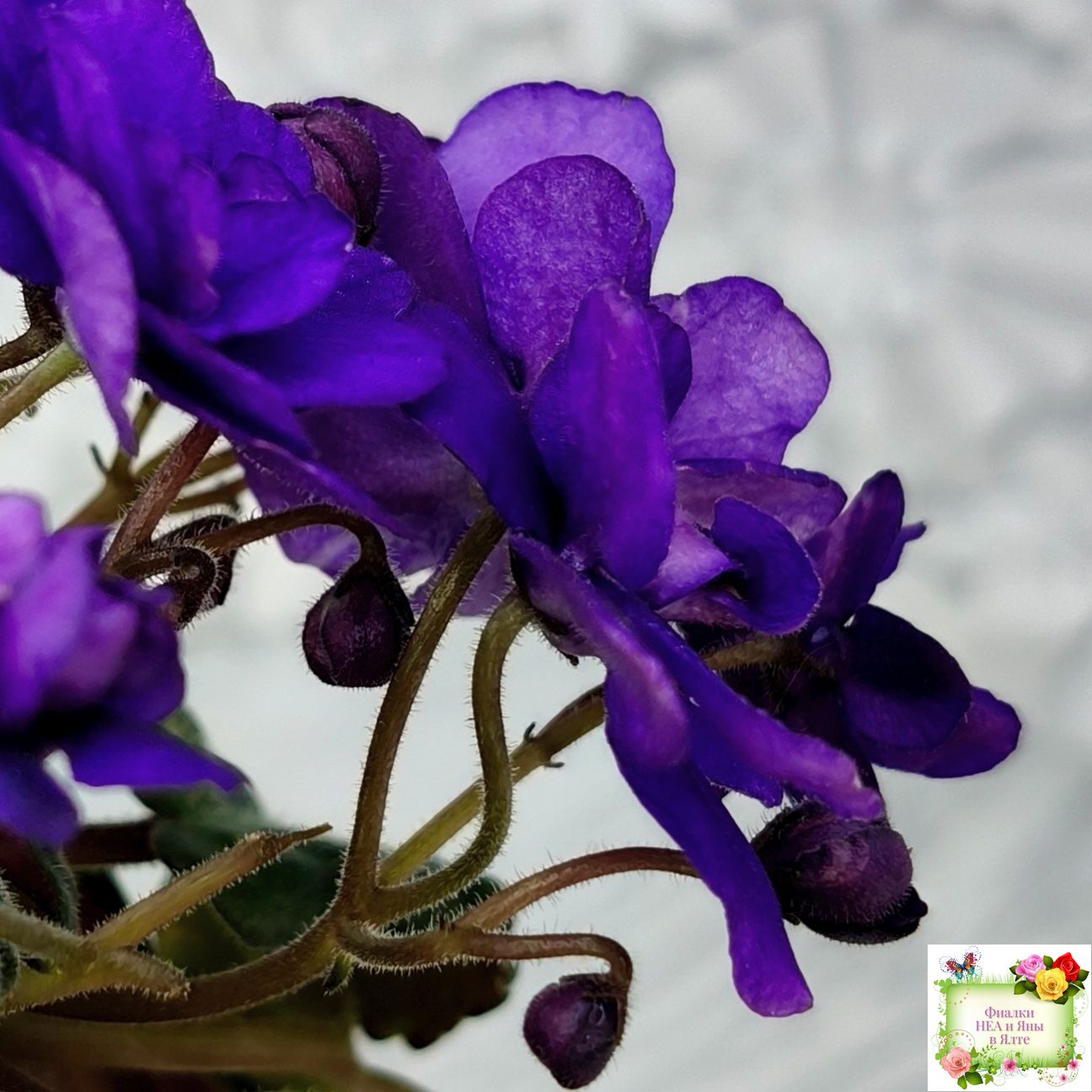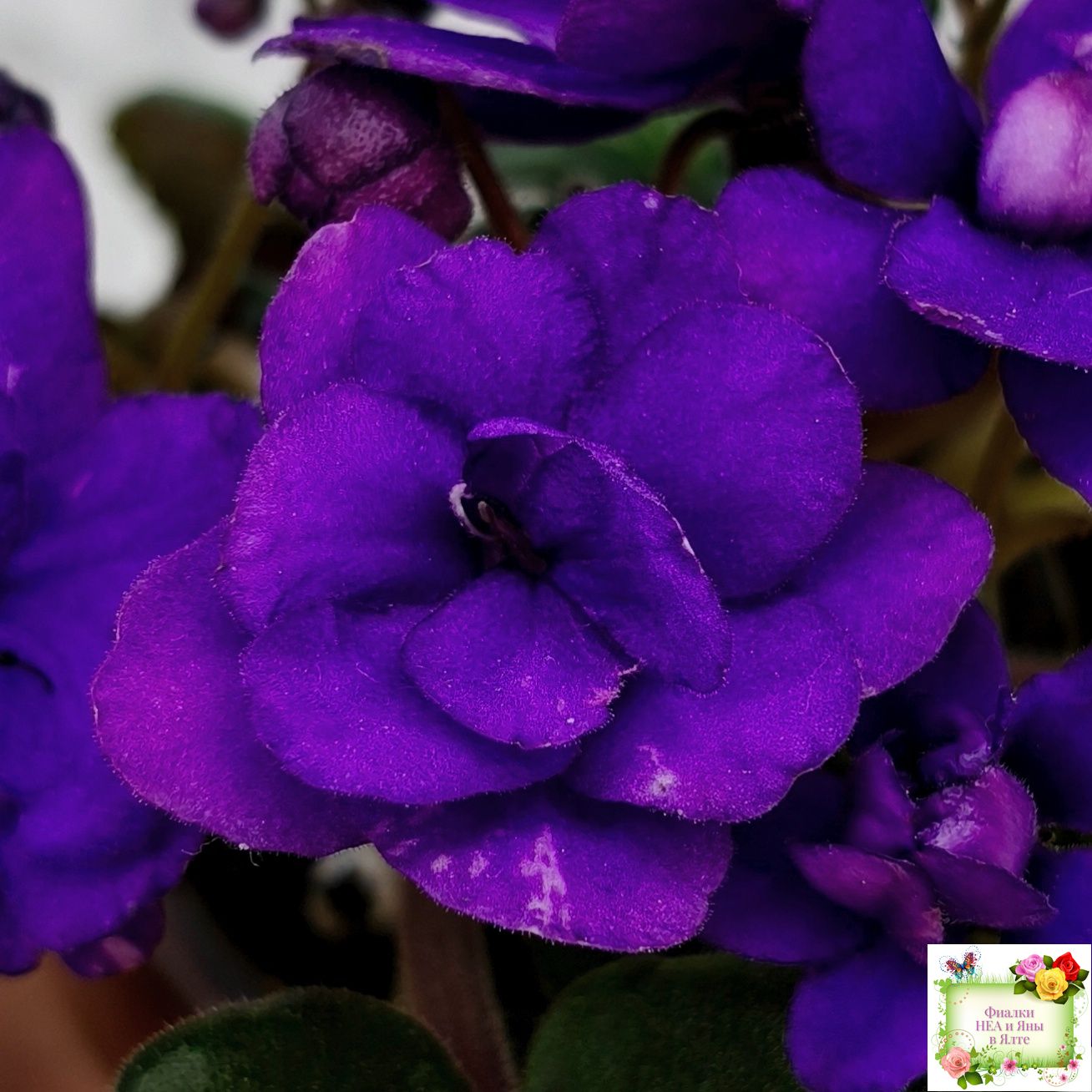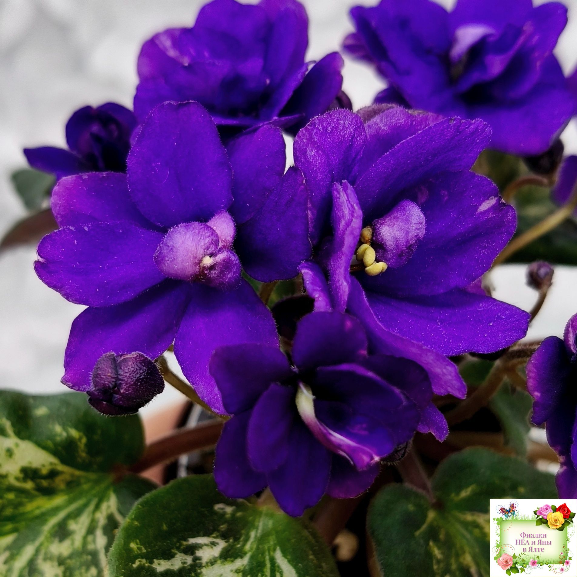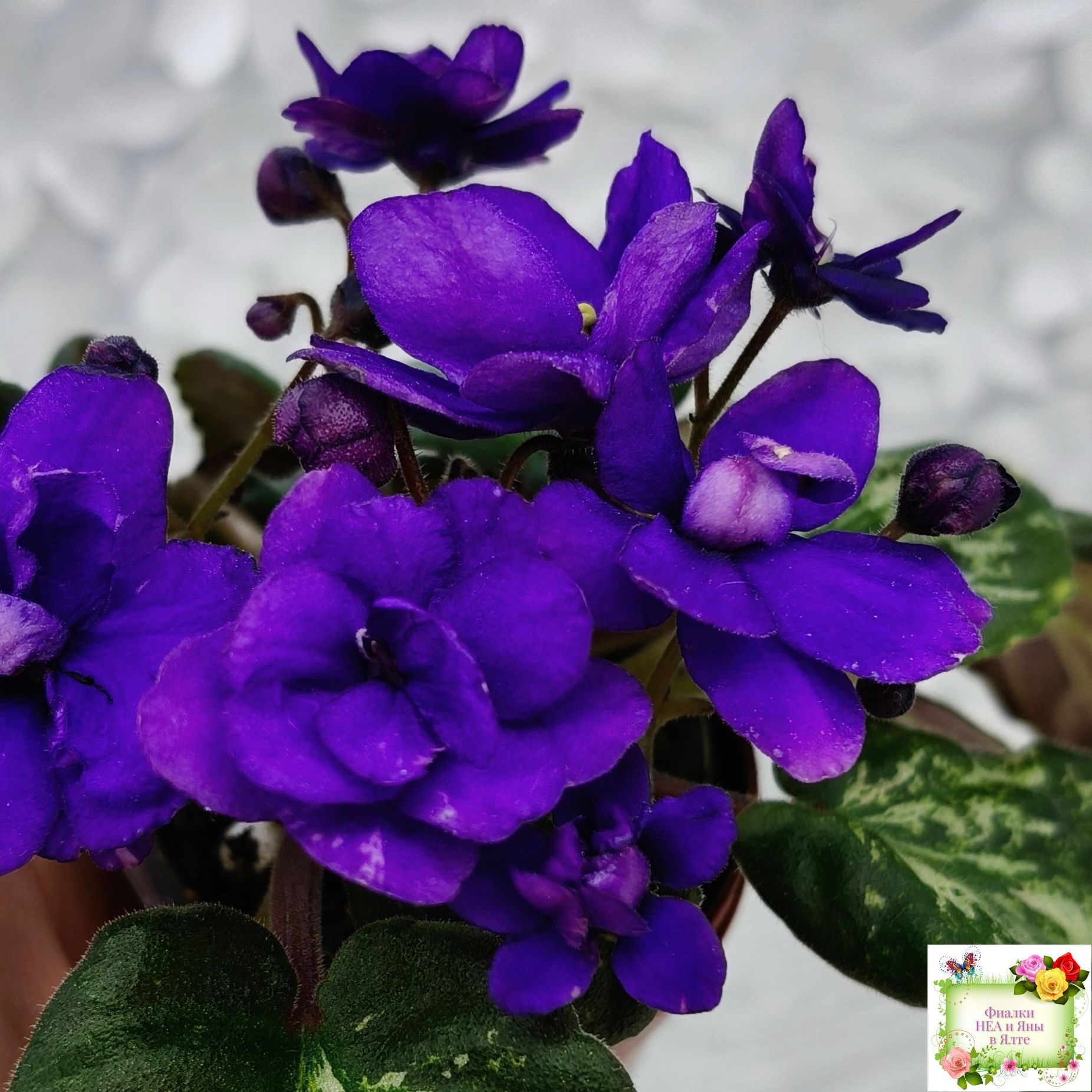 Double dark blue. Mosaic variegated dark green and silver. Semiminiature.