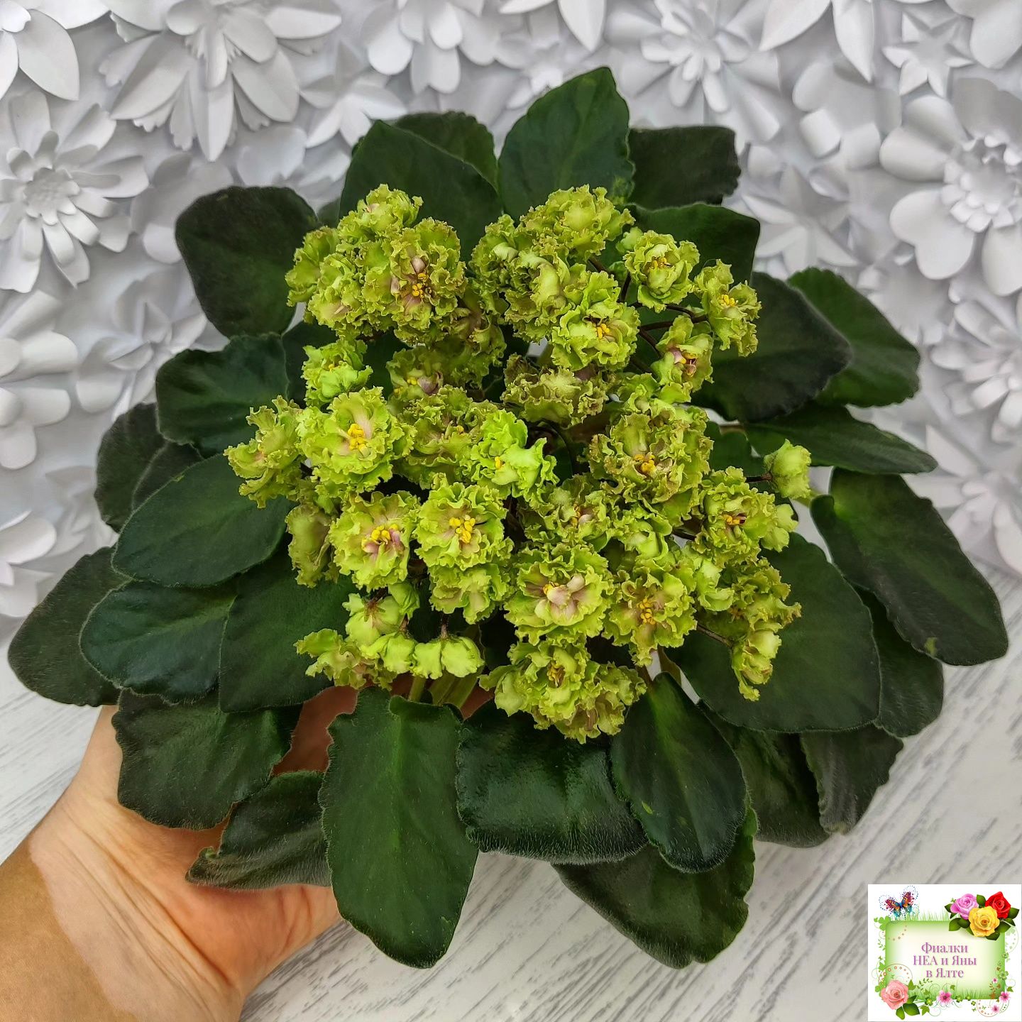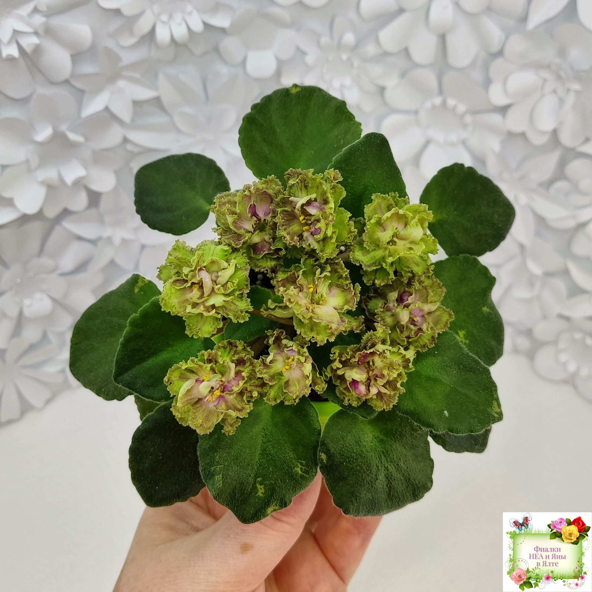 Едва появившись, этот сорт стал настоящей бомбой! Очень обильные густо-махровые травянисто-зеленые цветы с оборчатой малиново-красной каймой. Цветы сменяют друг друга, не отцветая, поэтому цветение длится бесконечно; листва волнистая светло-зеленая. Полумини