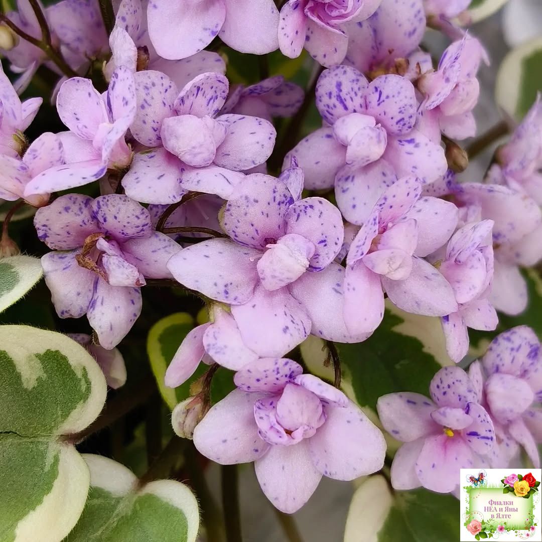 Цветы розовые полумахровые с крапом синего фэнтези.