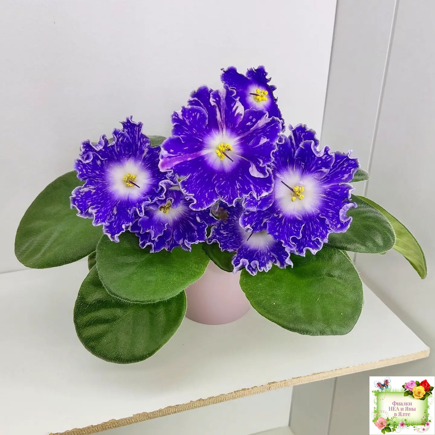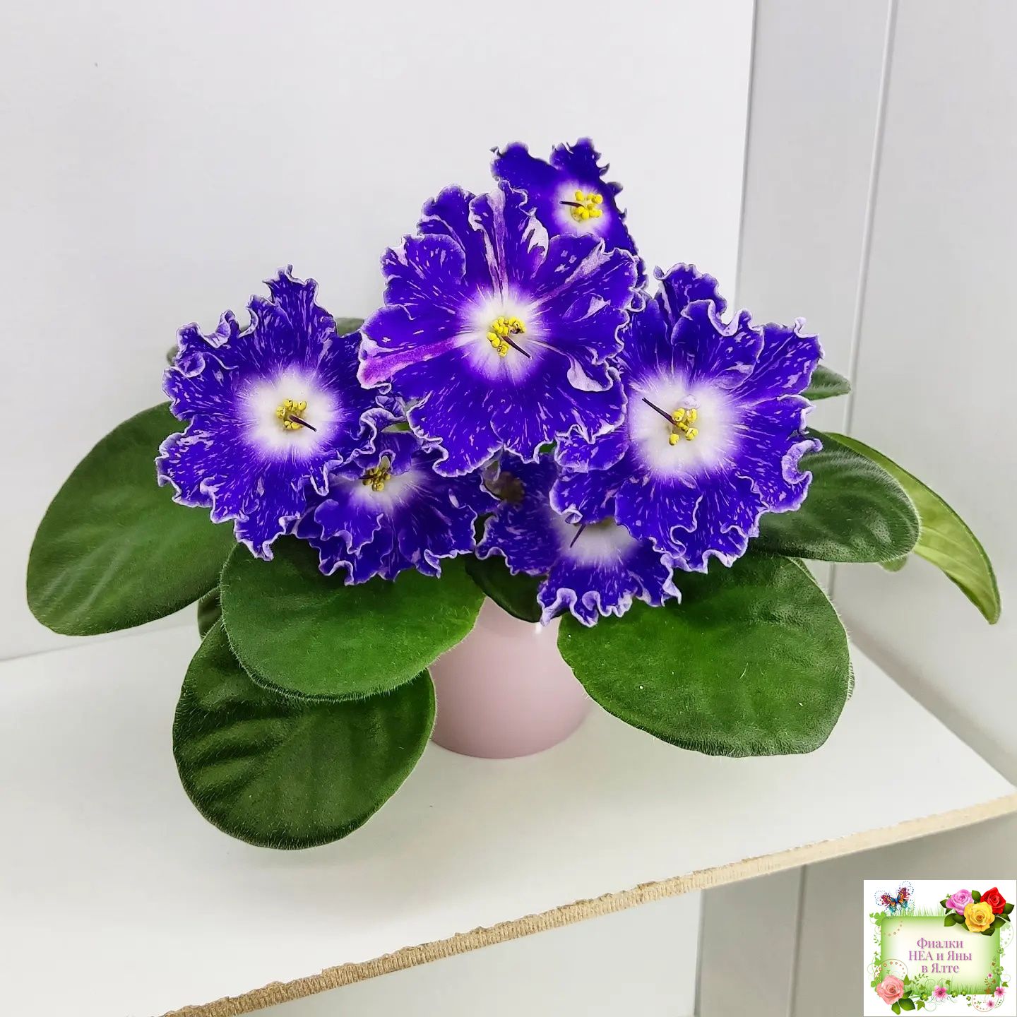 Синие колокольчики с волнистыми краями лепестков, редкими штрихами фэнтези и сияющим глазком. Аккуратная розетка зеленых листьев.