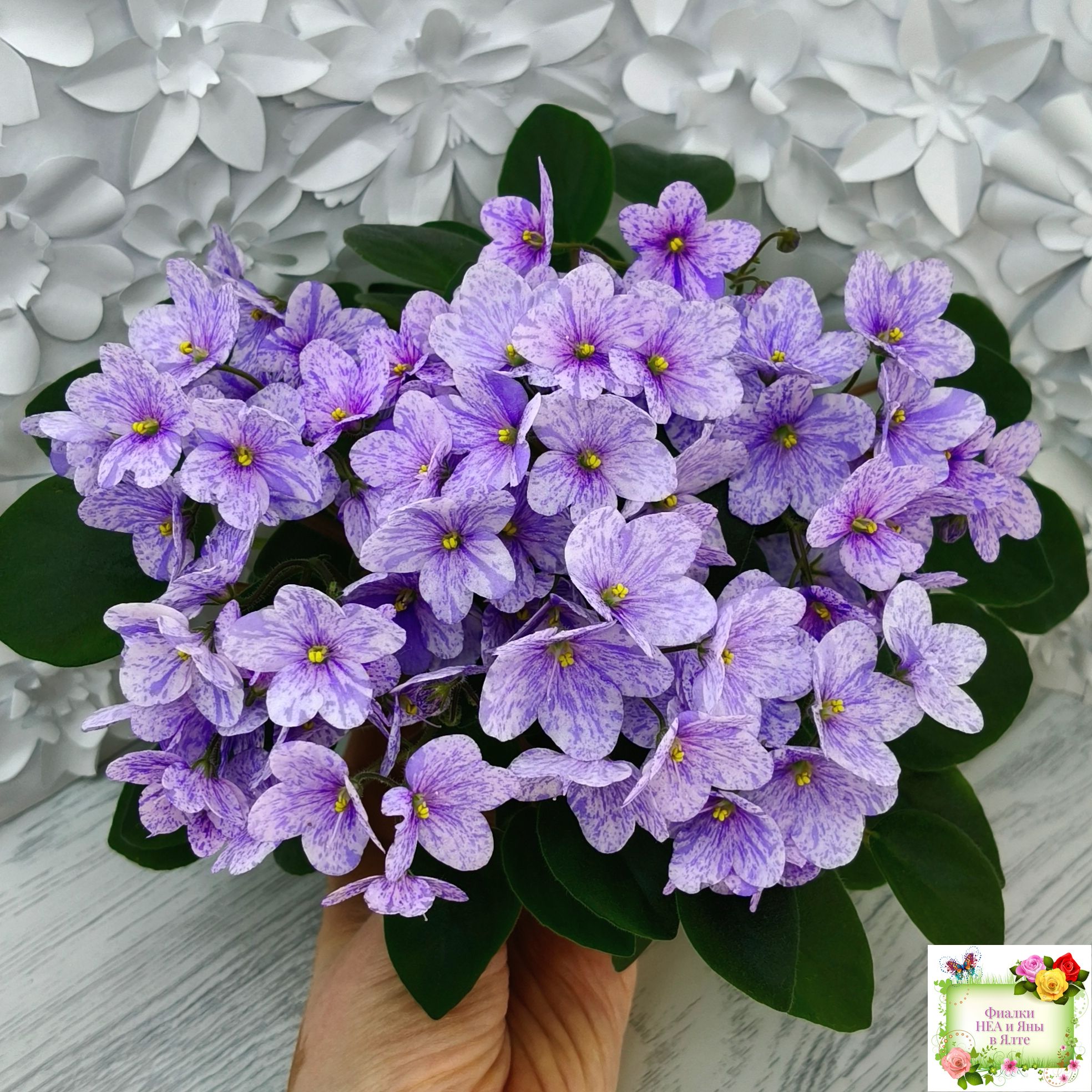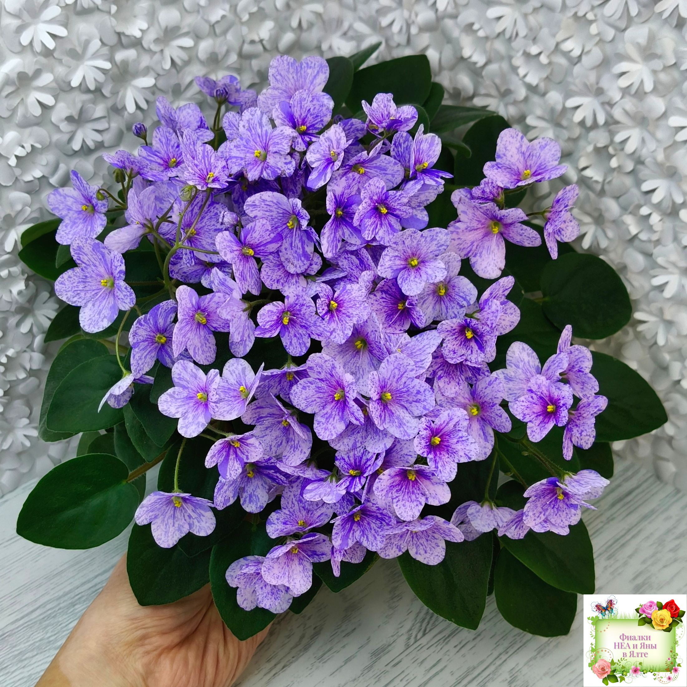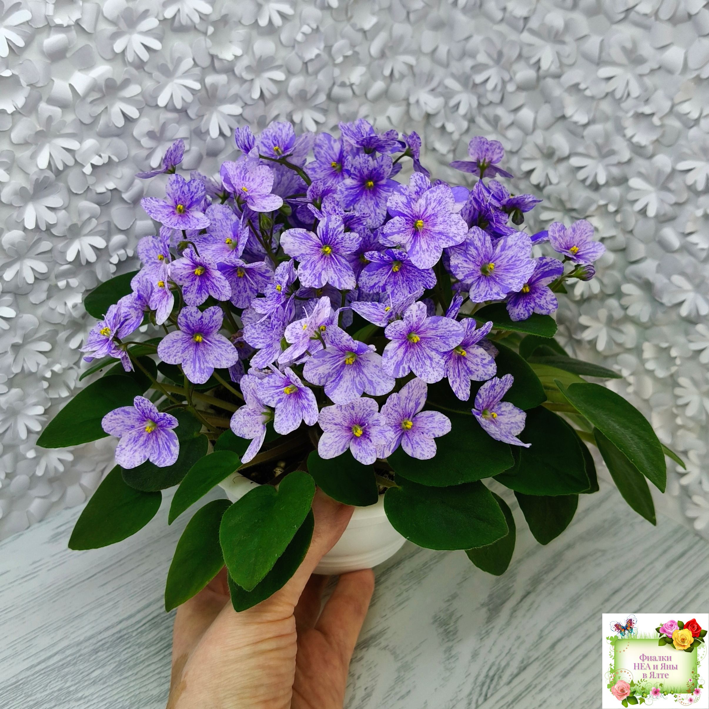 Цветок: Нежно-розовая анютка с фиолетовым фентези штрихами, полосками и фрагментами, не опадает.