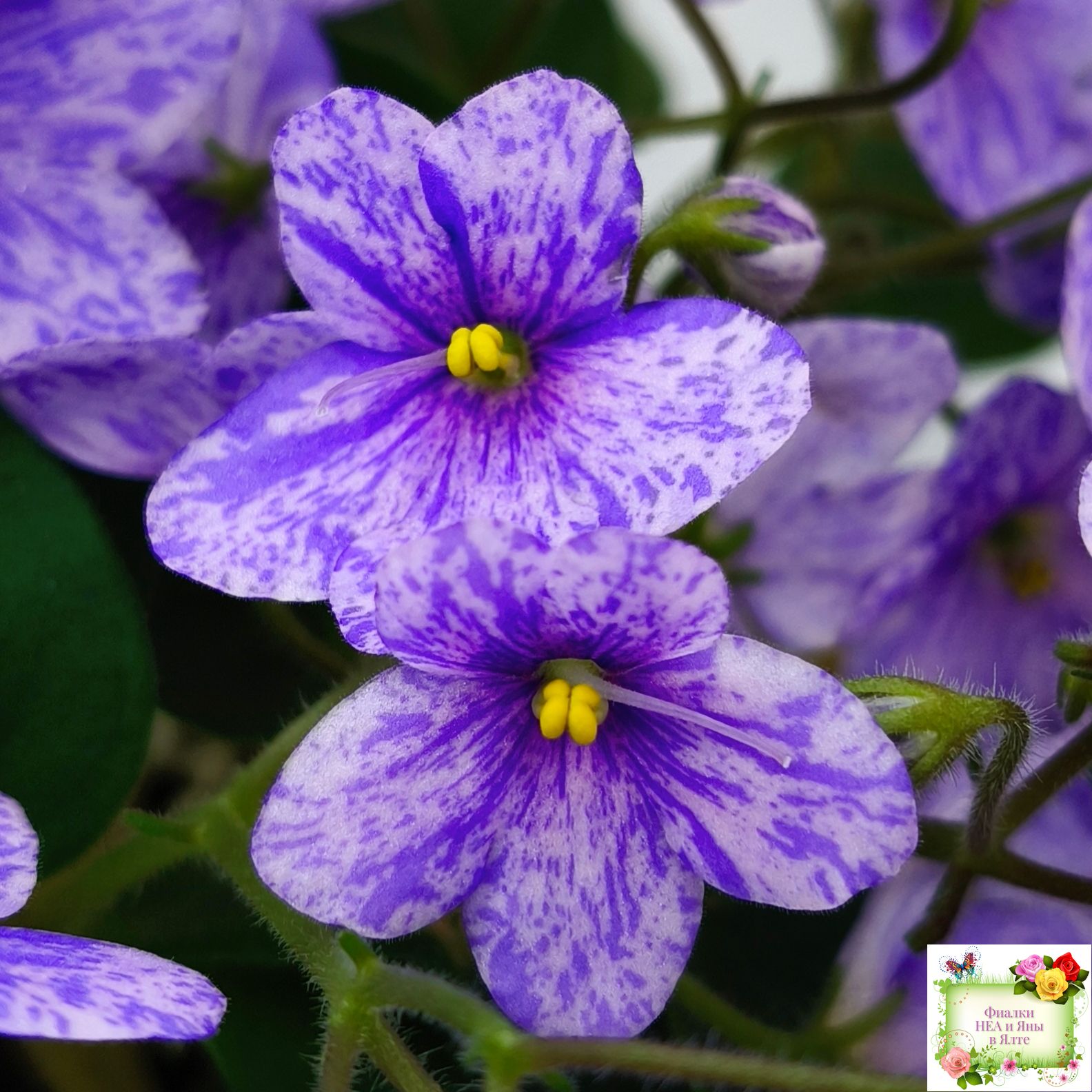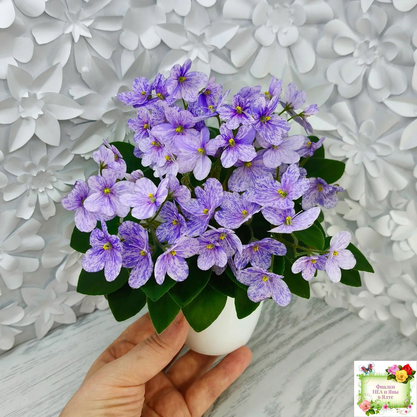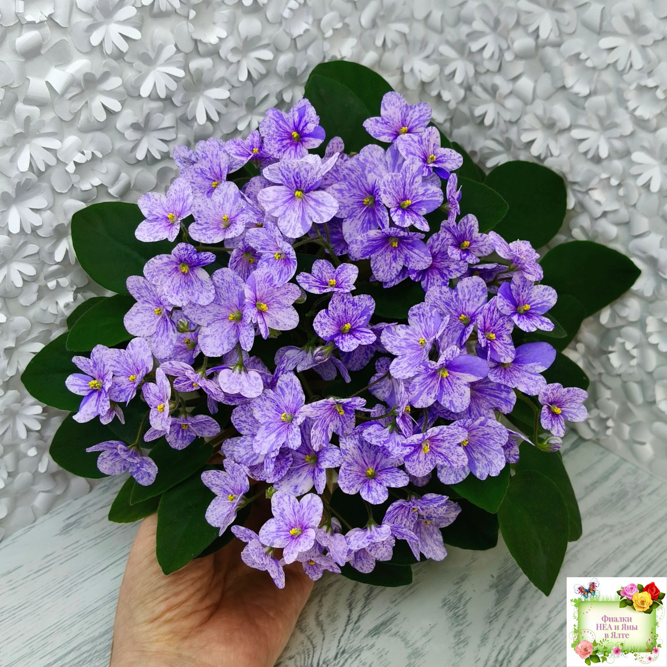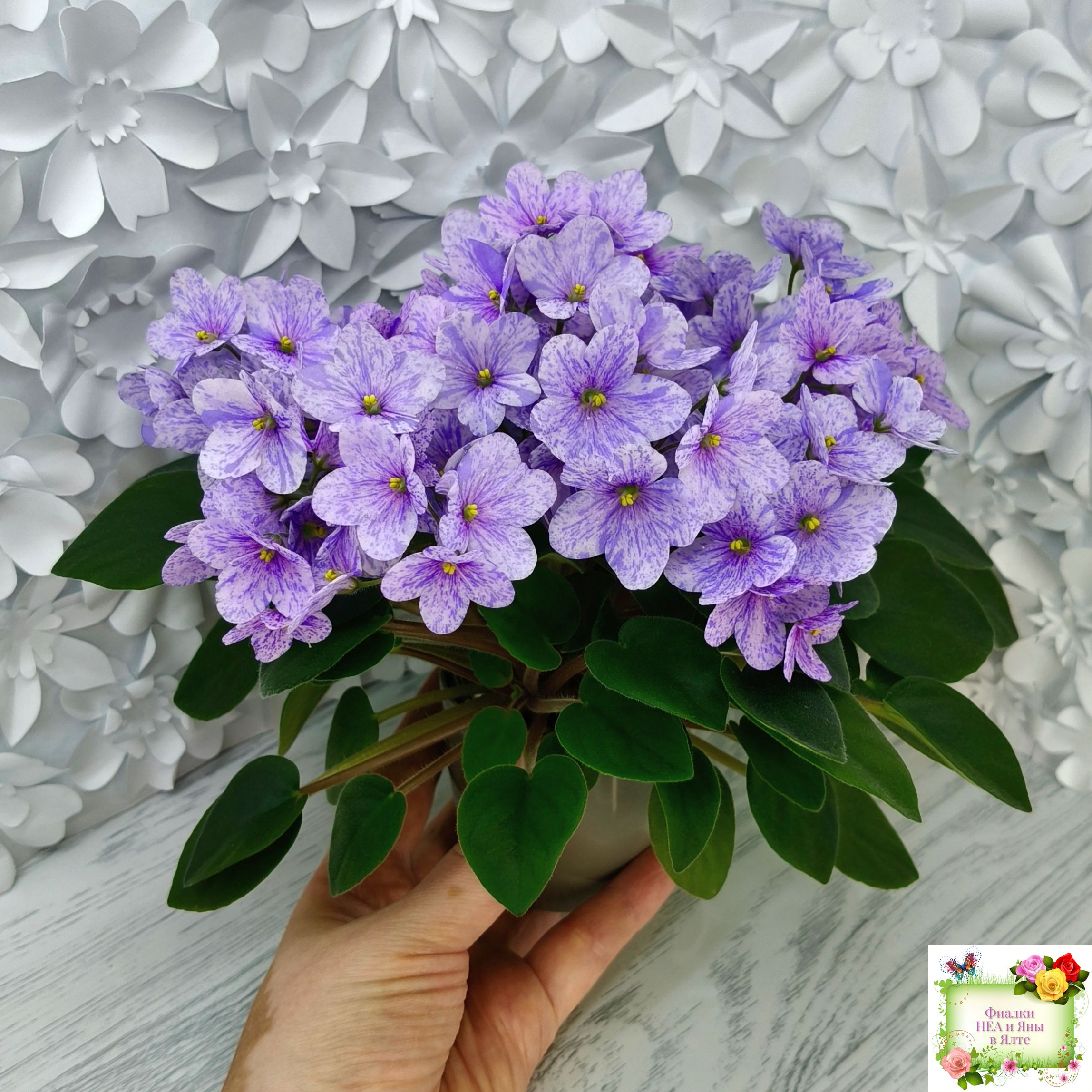 Цветок: Нежно-розовая анютка с фиолетовым фентези штрихами, полосками и фрагментами, не опадает.