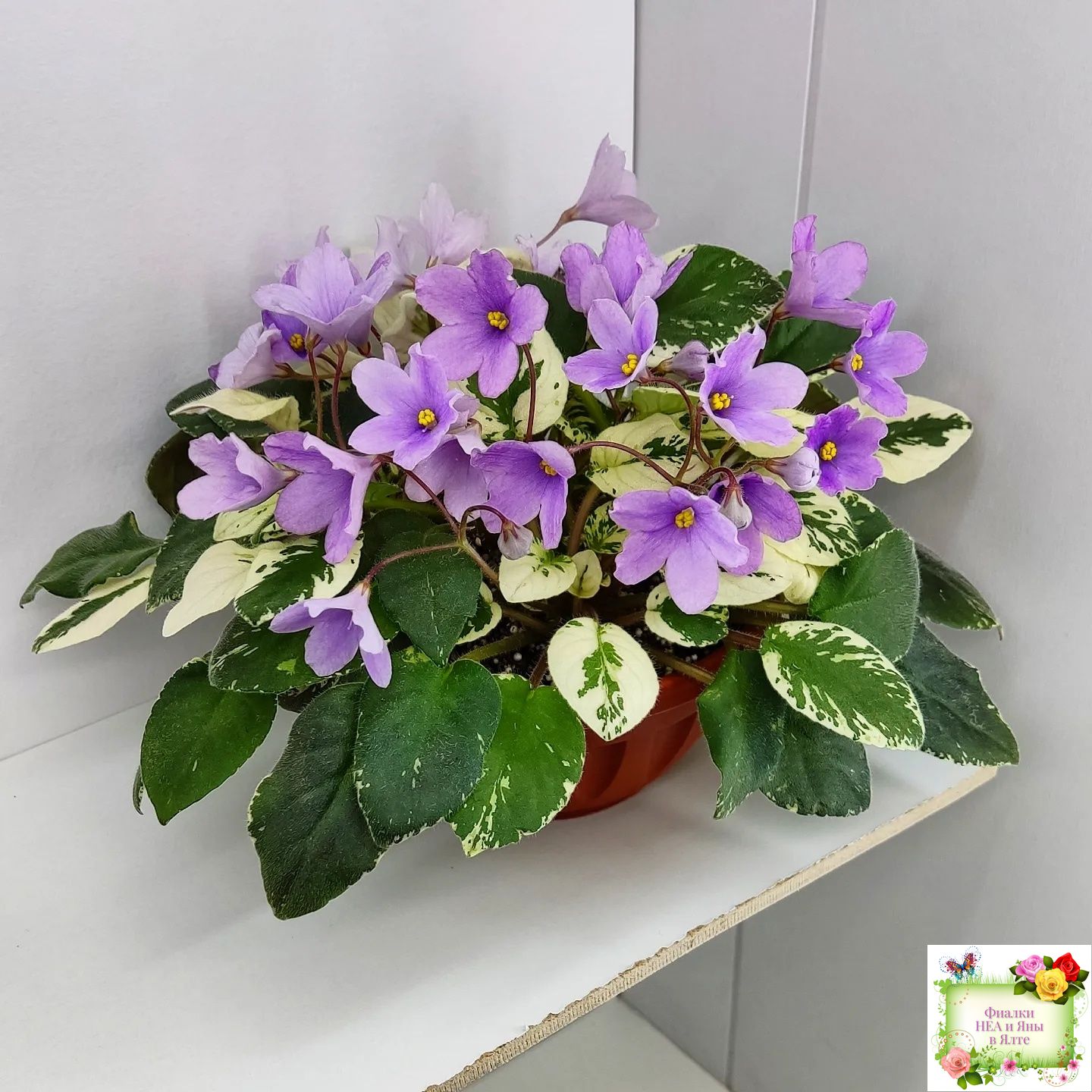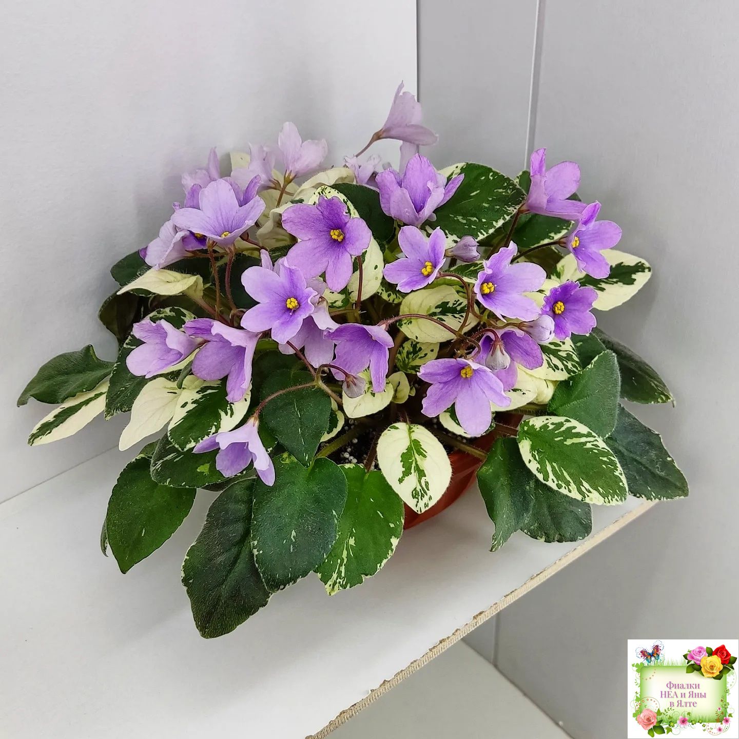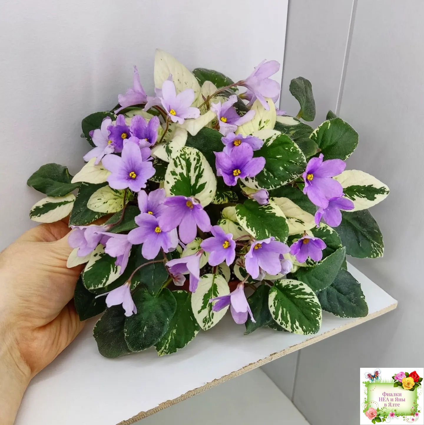 Пепельно-розовые крупные настоящие колокольчики . Обильное цветение. Очень красивая удлиненная пестрая бело серебристо зеленая листва. Полумини трейлер.
