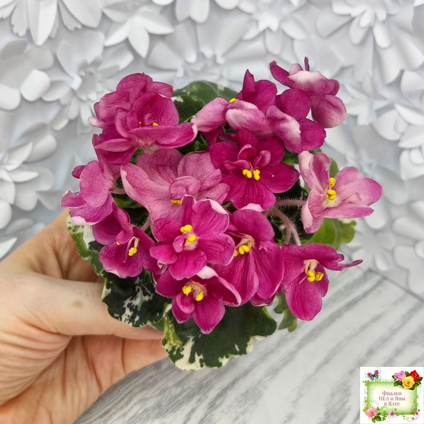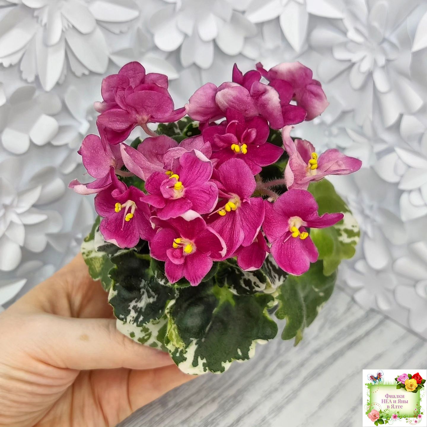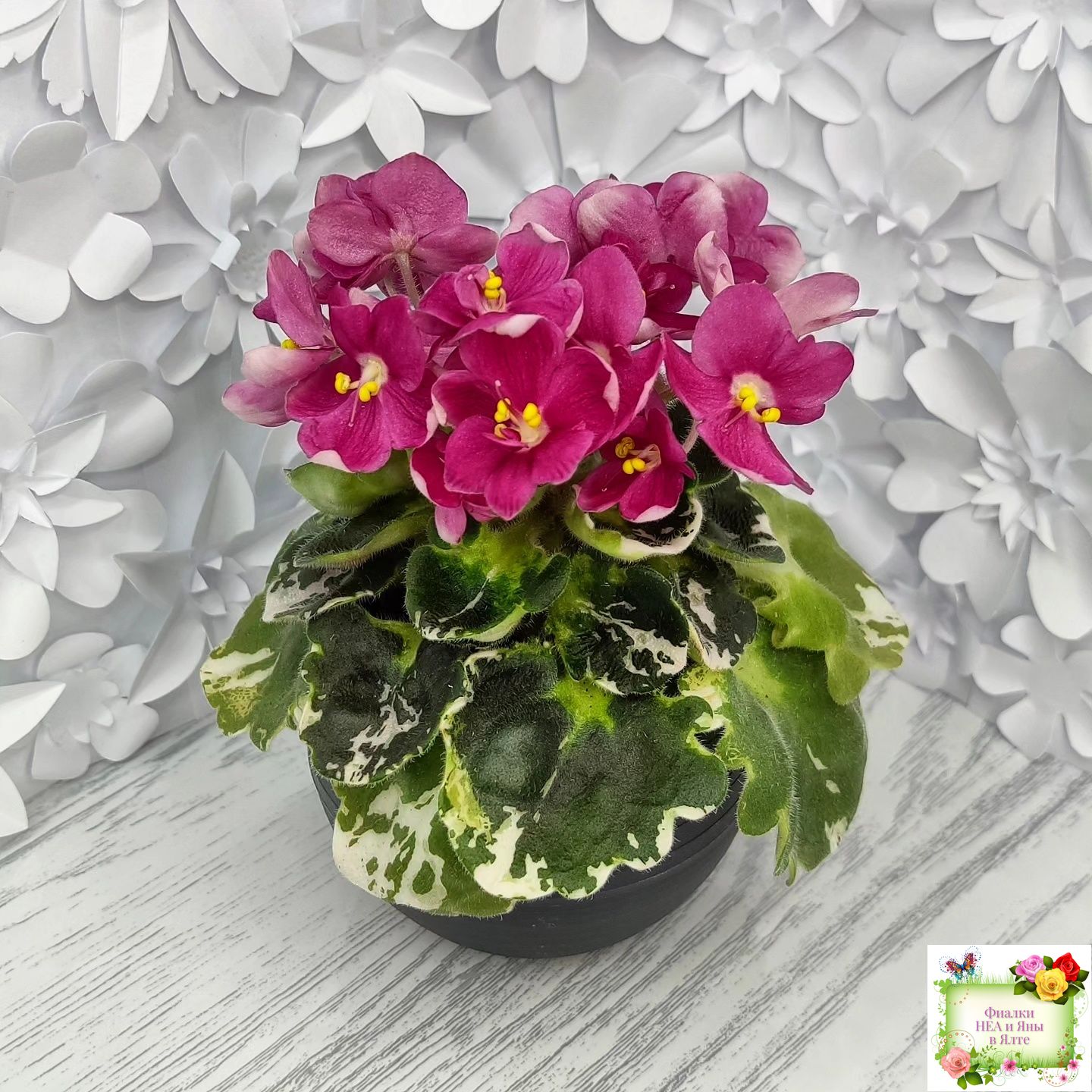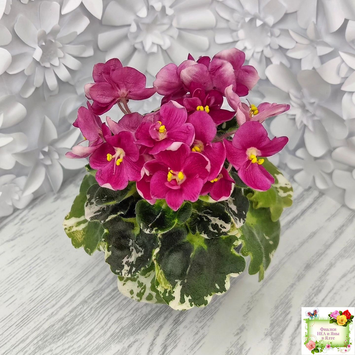 Ярко коралловые простые анютины глазки на пестрой герл листве. Полумини. 2017