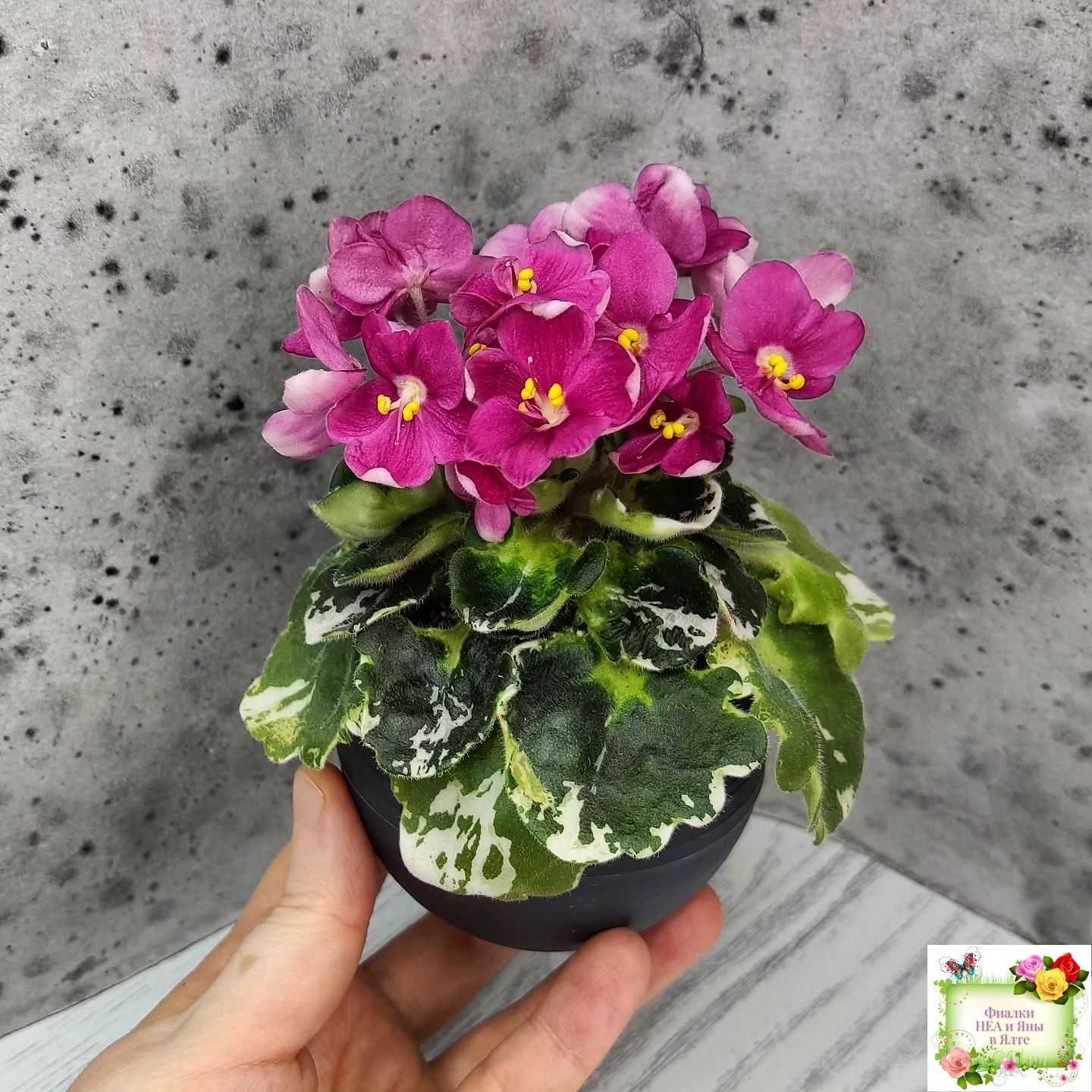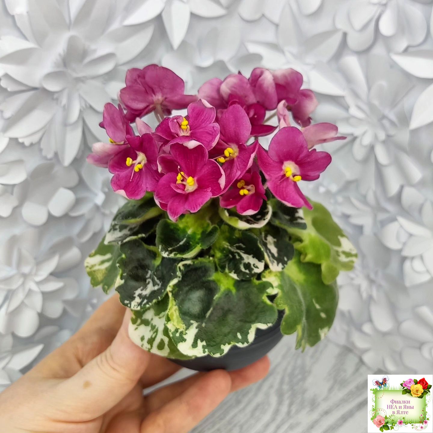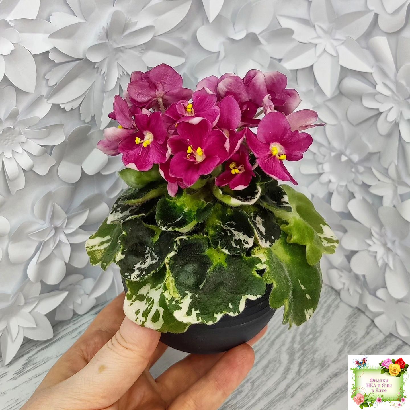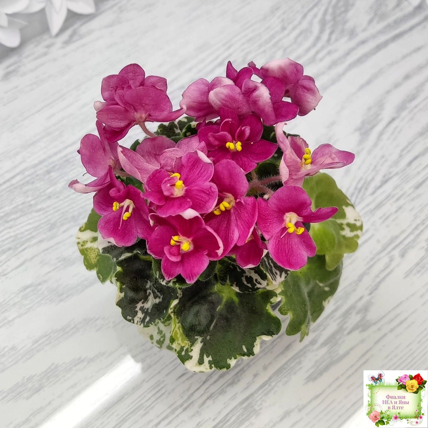 Ярко коралловые простые анютины глазки на пестрой герл листве. Полумини. 2017