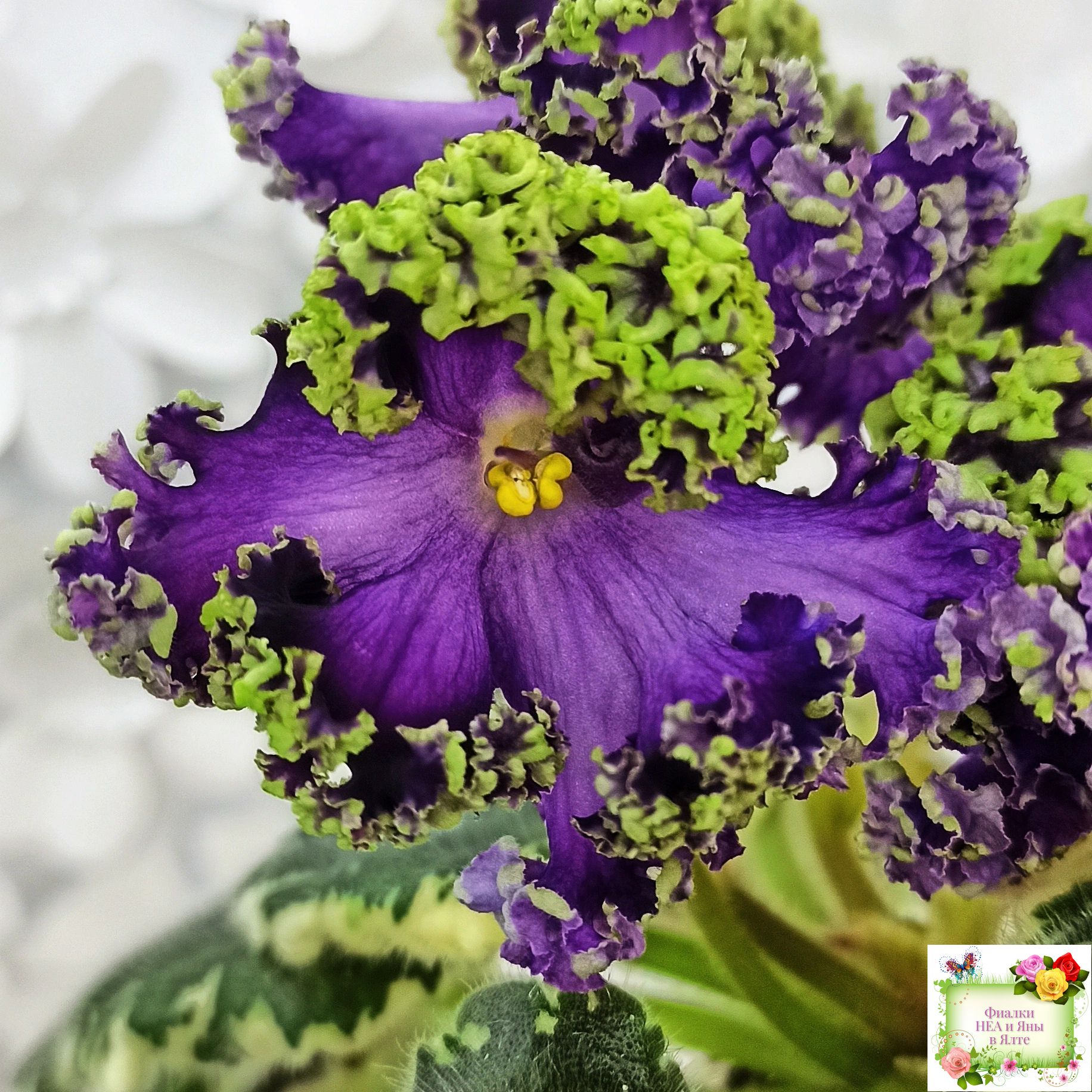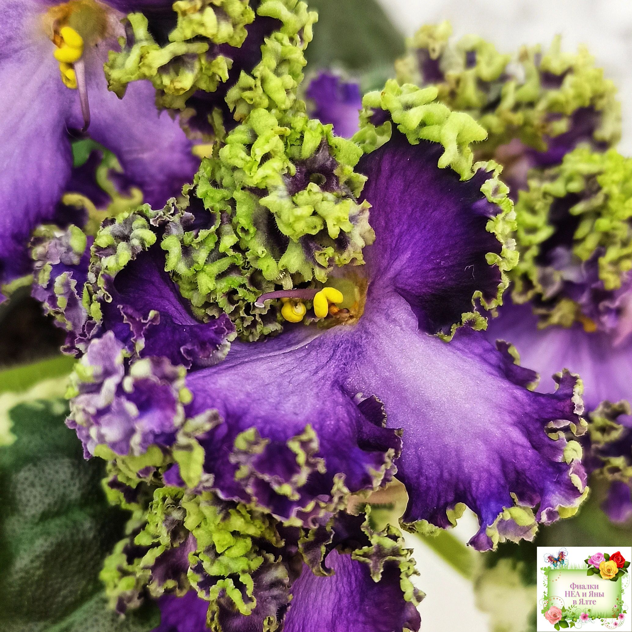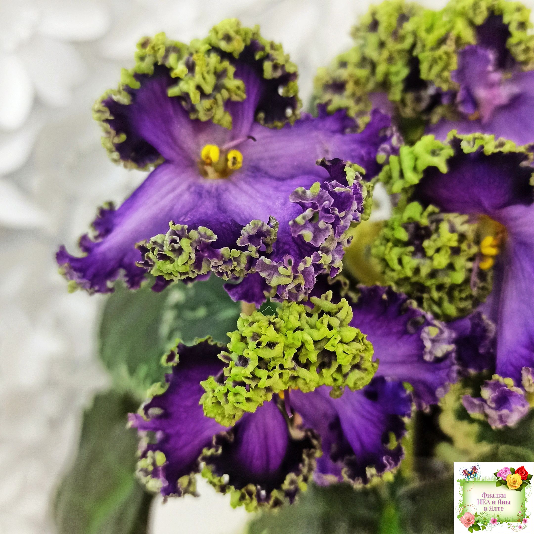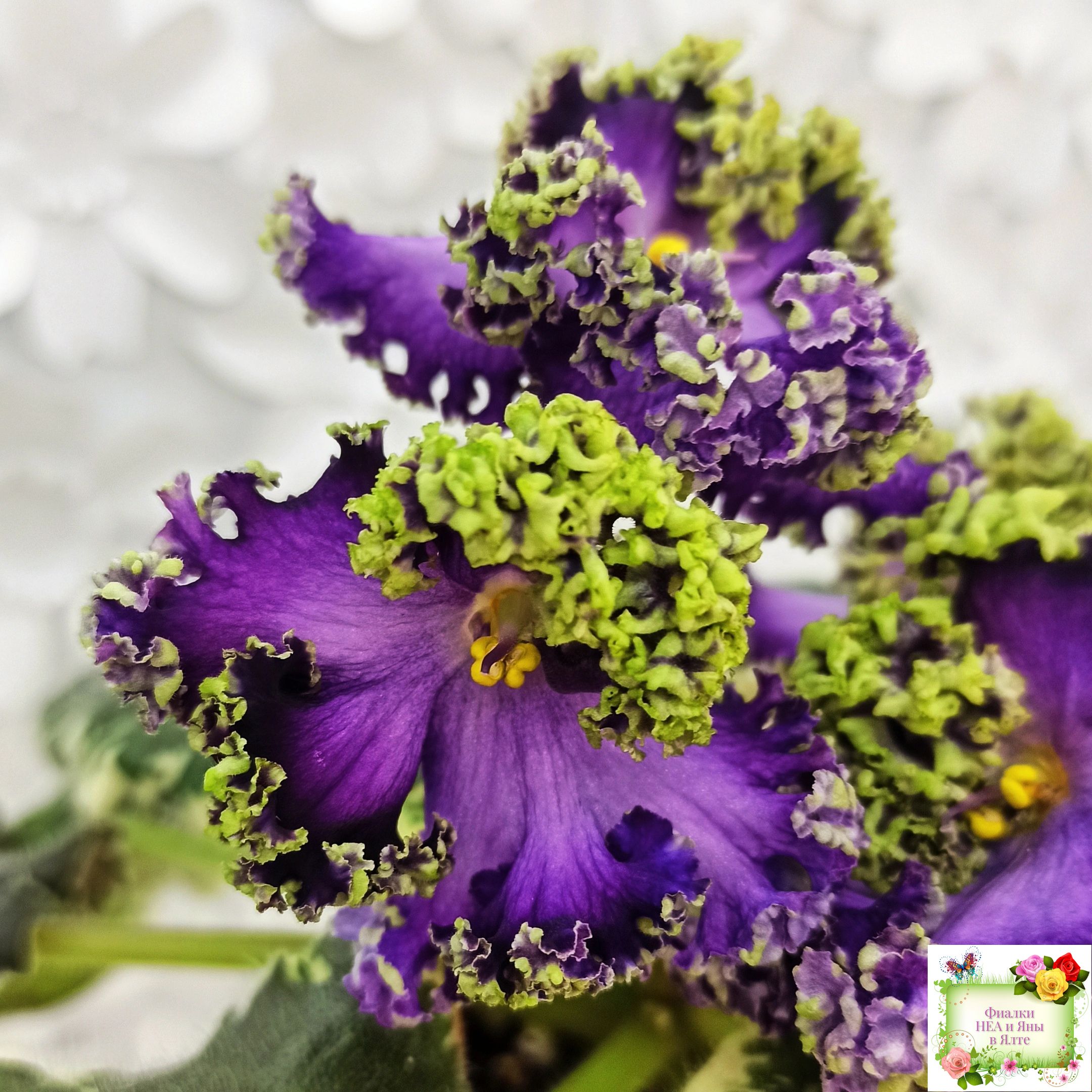 Нежно лавандовые анютки с бело-зеленоватой слегка гофрированной каймой и сгущением цвета под краями лепестков, пестролистник. (Описание сорта).