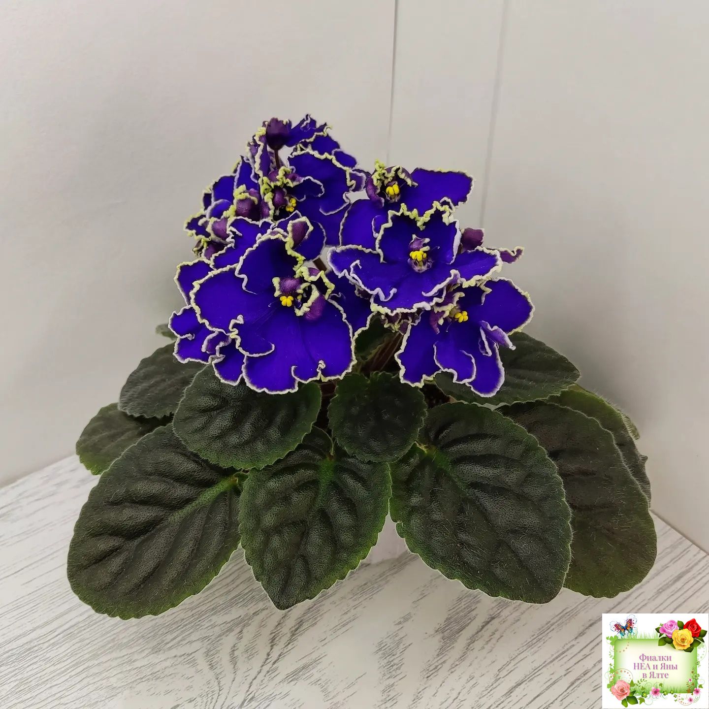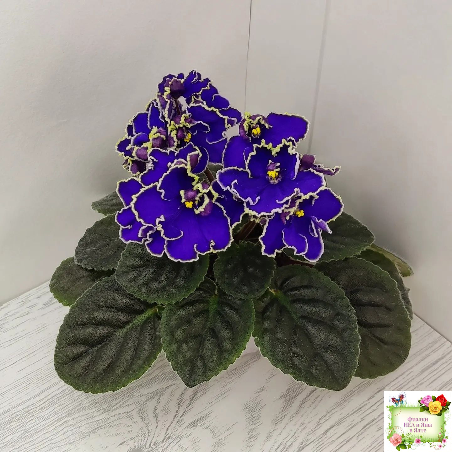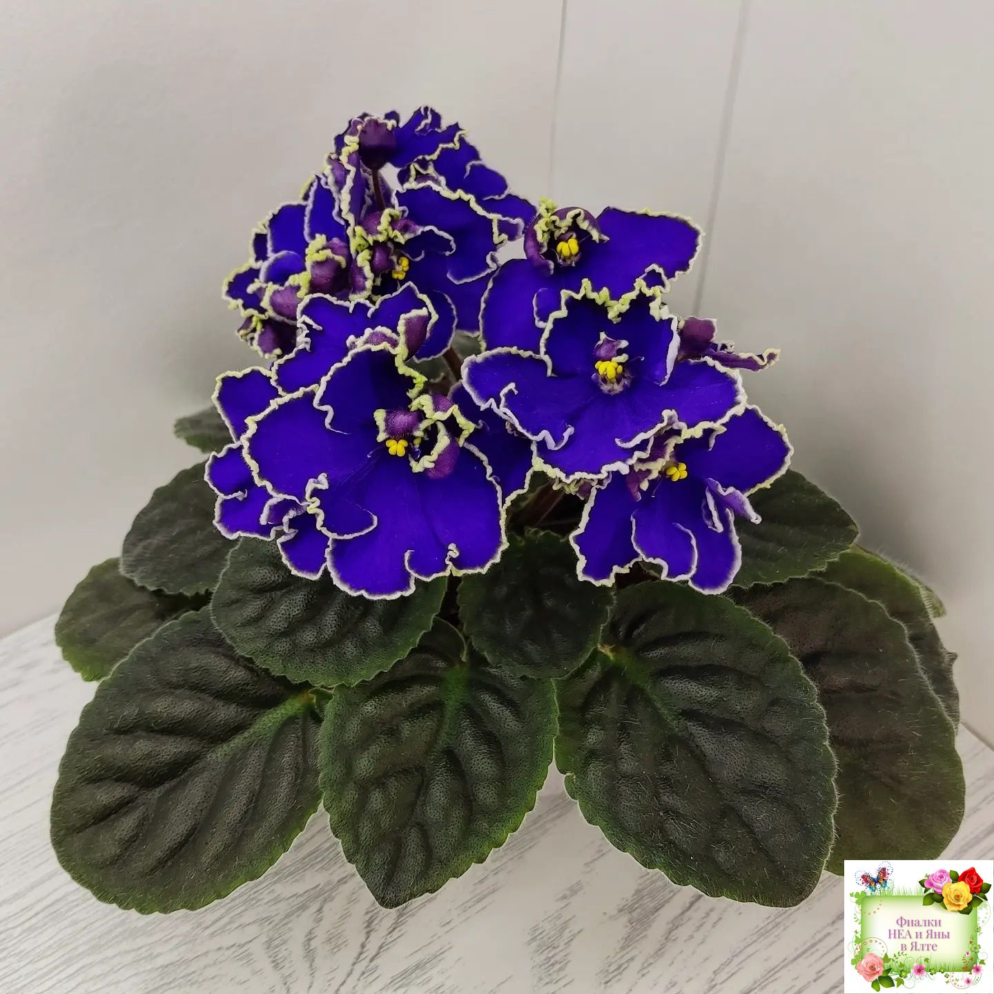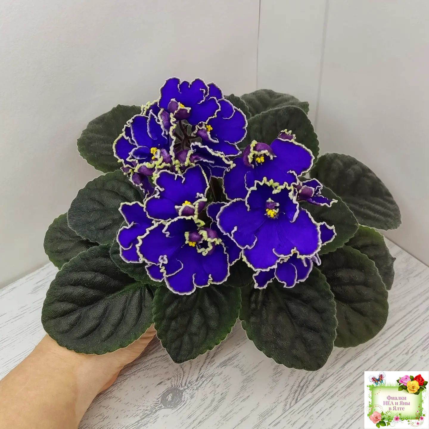 Крупные полумахровые темно-темно синие цветы фиалковой формы с широкой «жирной» волнистой зелёной бахромой. Лист средне-зелёный.