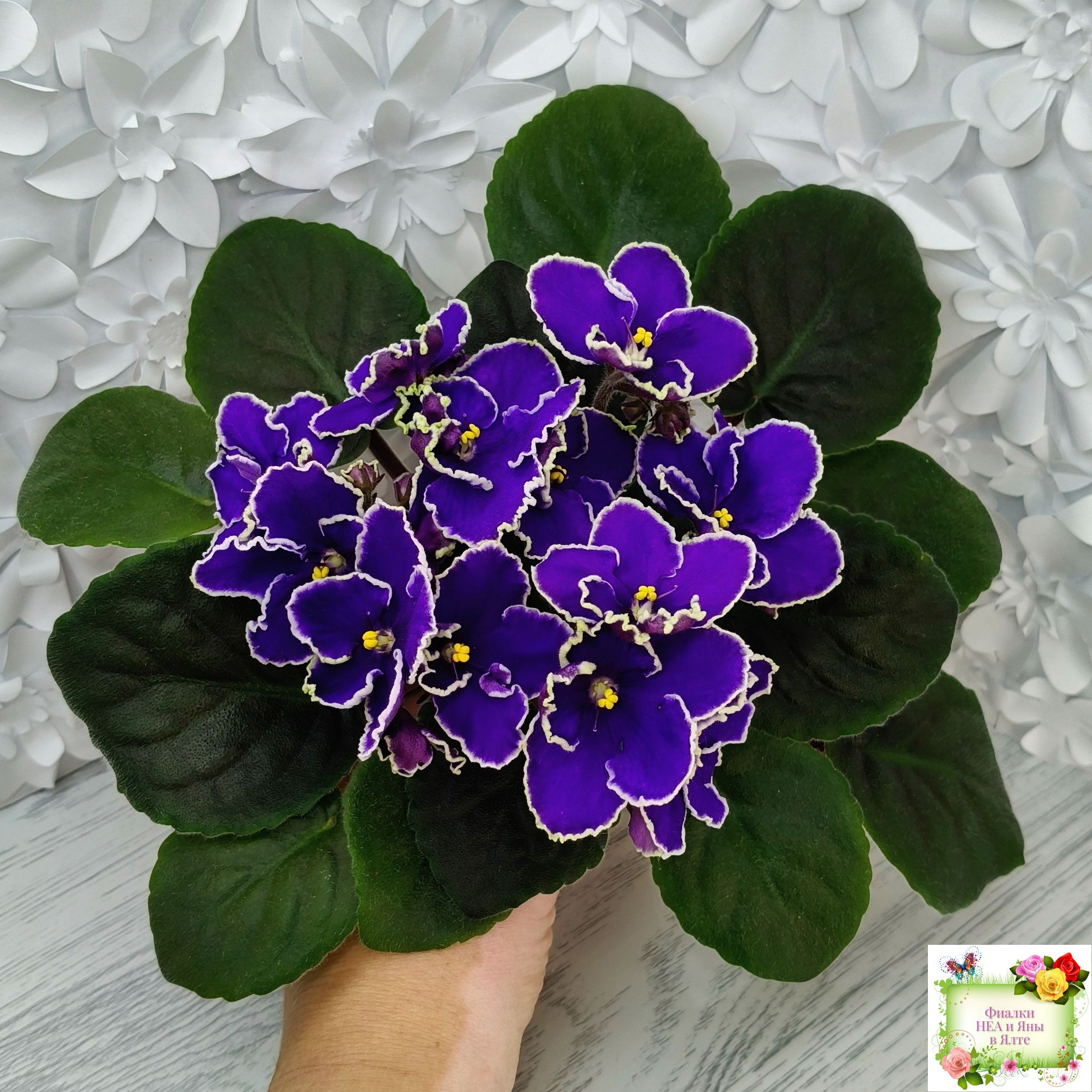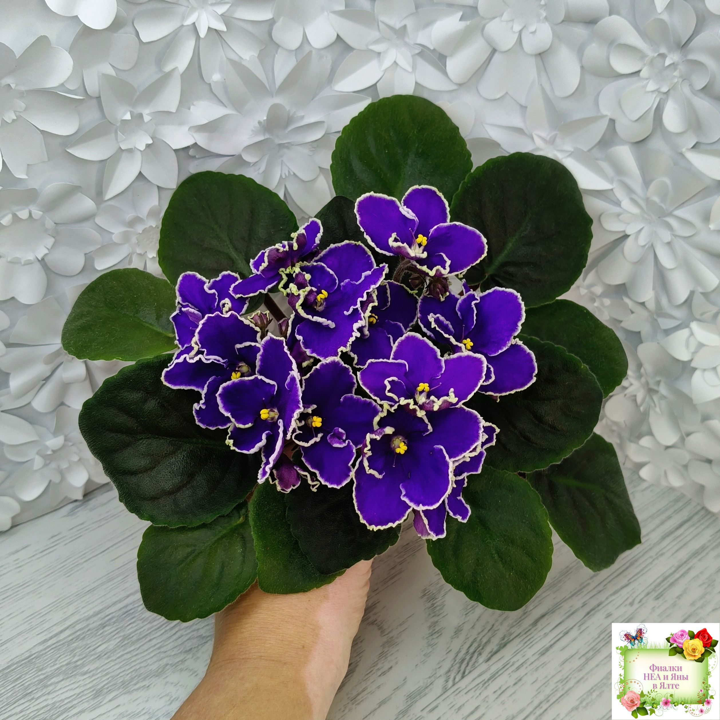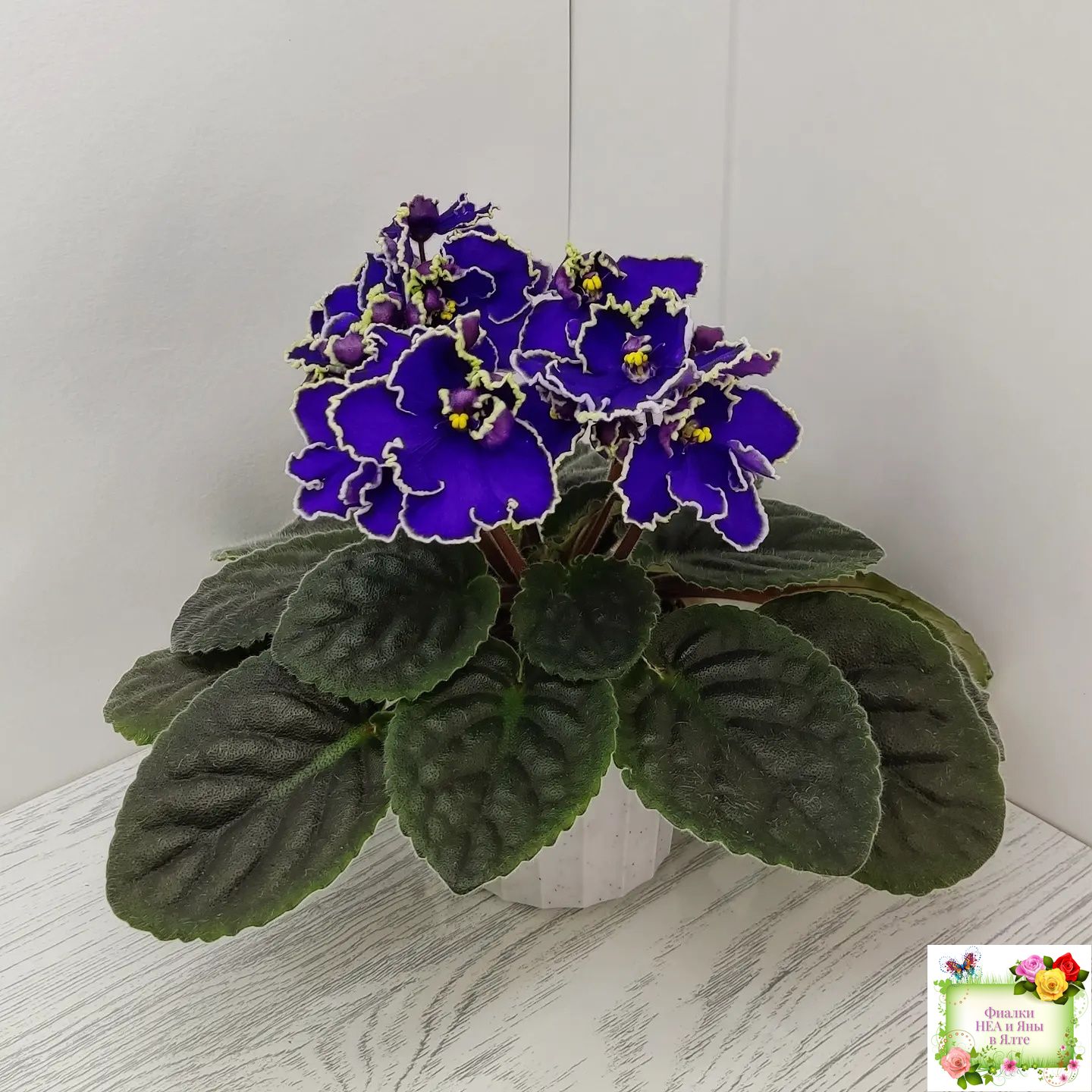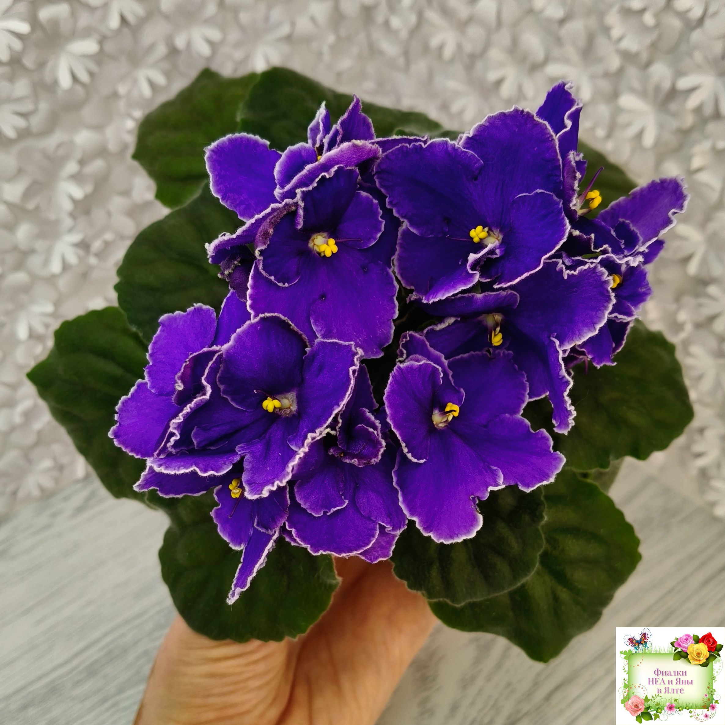 Крупные полумахровые темно-темно синие цветы фиалковой формы с широкой «жирной» волнистой зелёной бахромой. Лист средне-зелёный.
