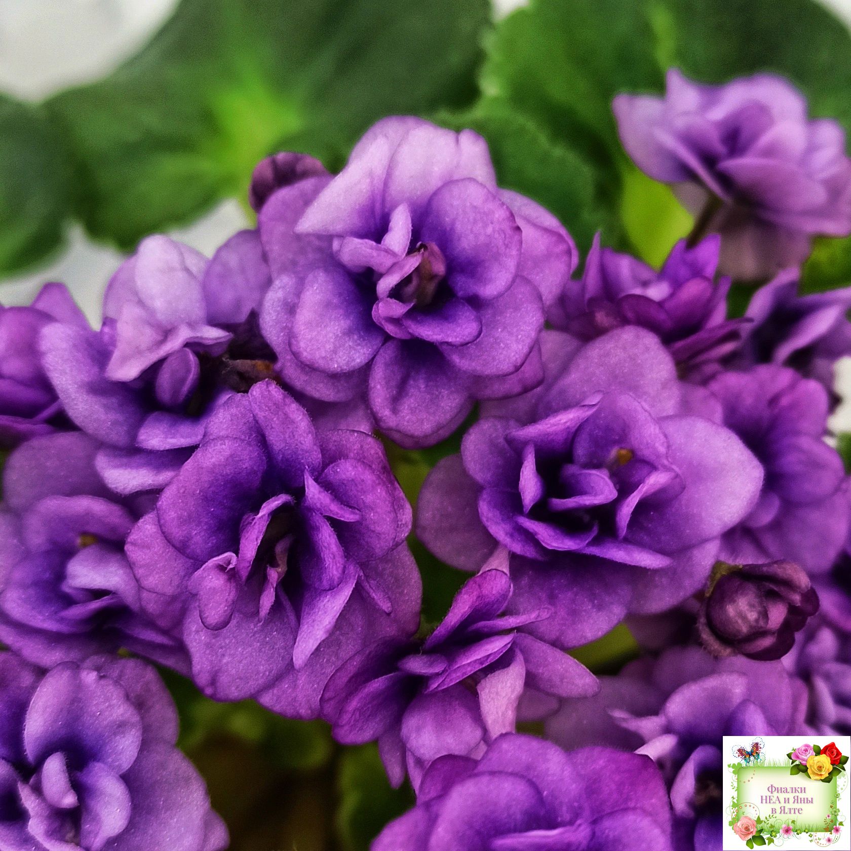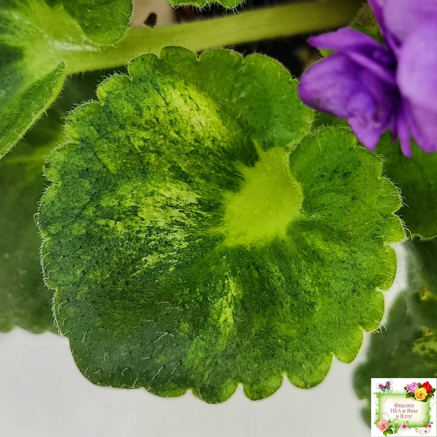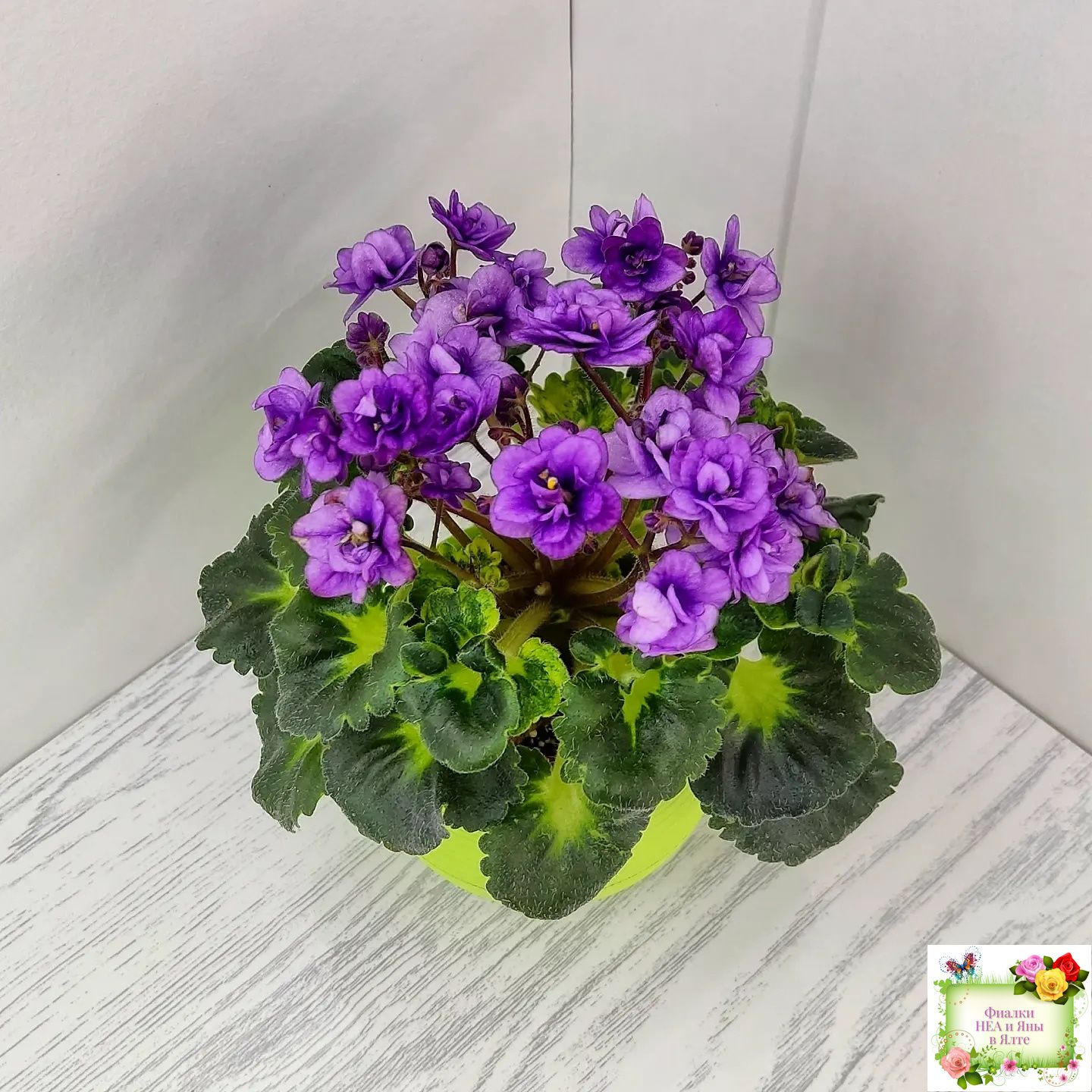 Махровые сиренево-лавандовые цветы-шарики; необычайно красивая кудрявая золотисто-зеленая гел-листва с кроновой пестролистностью. Полумини.