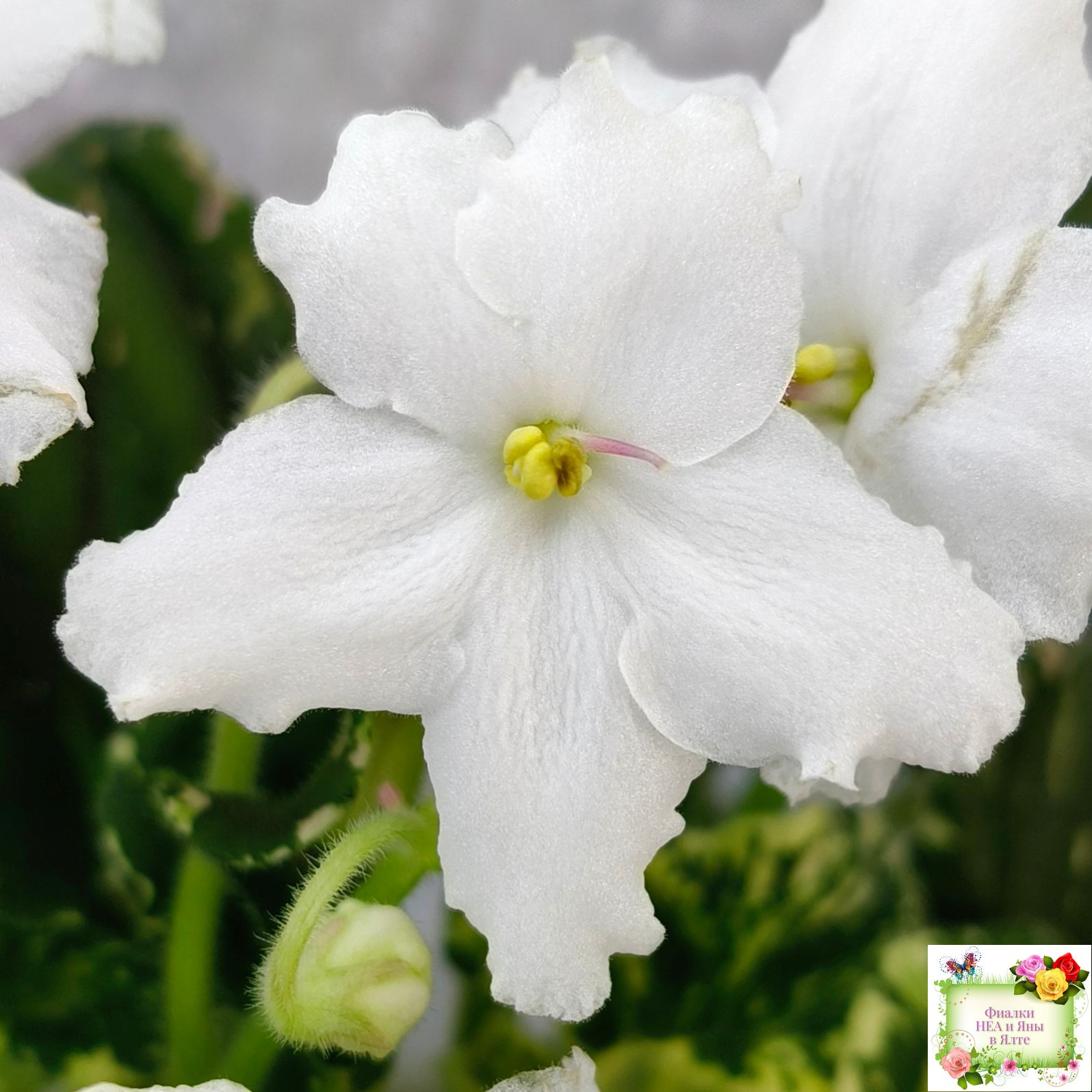 Цветок: Простой крупный белый фиалковой формы.