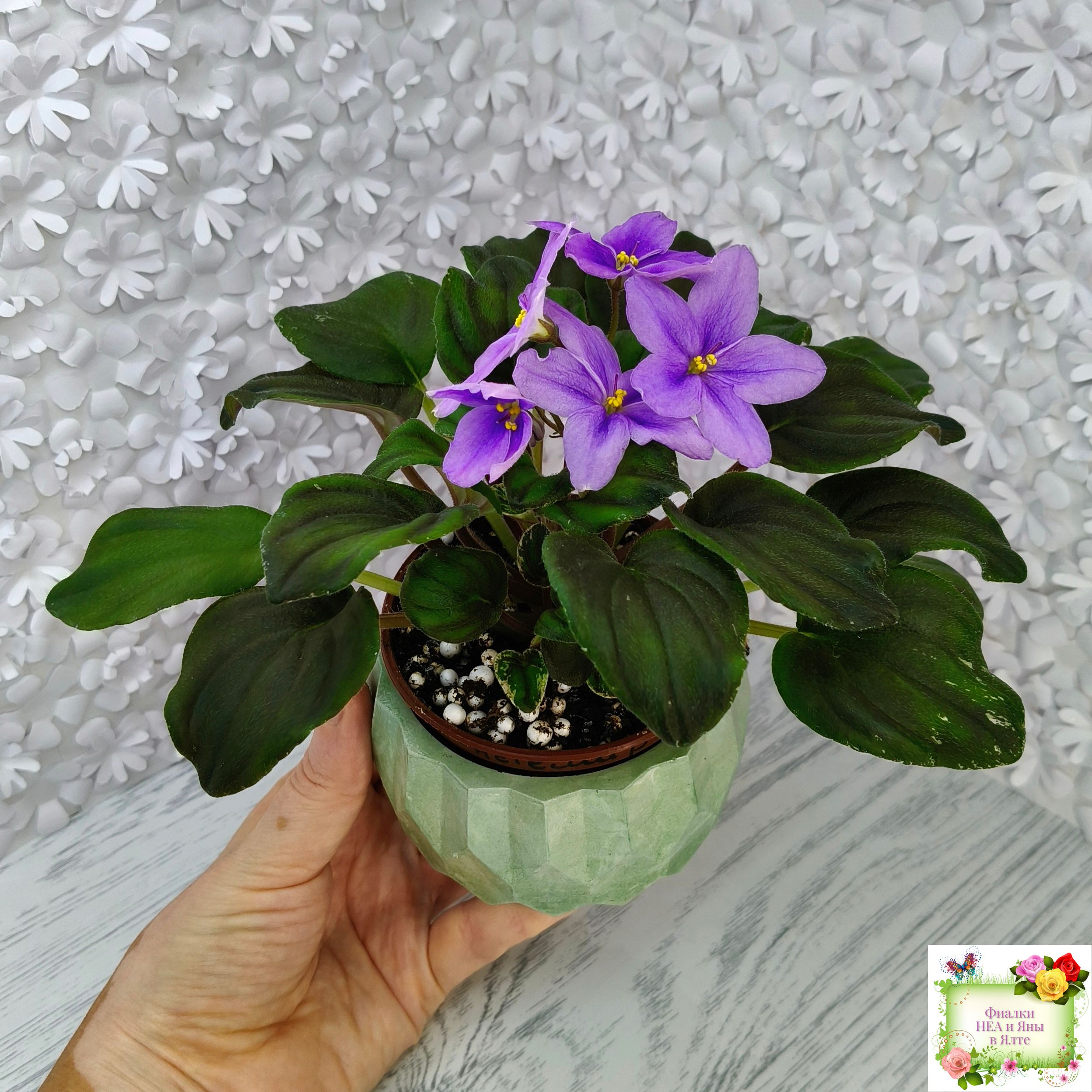 Розетка: Лист темно-зелёный пестролистный клакамасного типа жилкования.