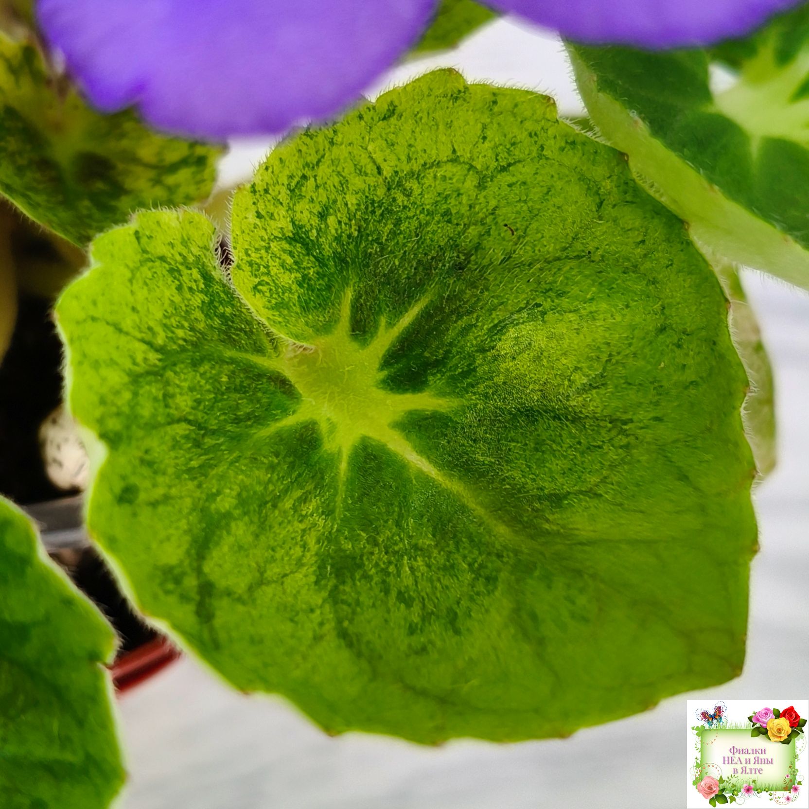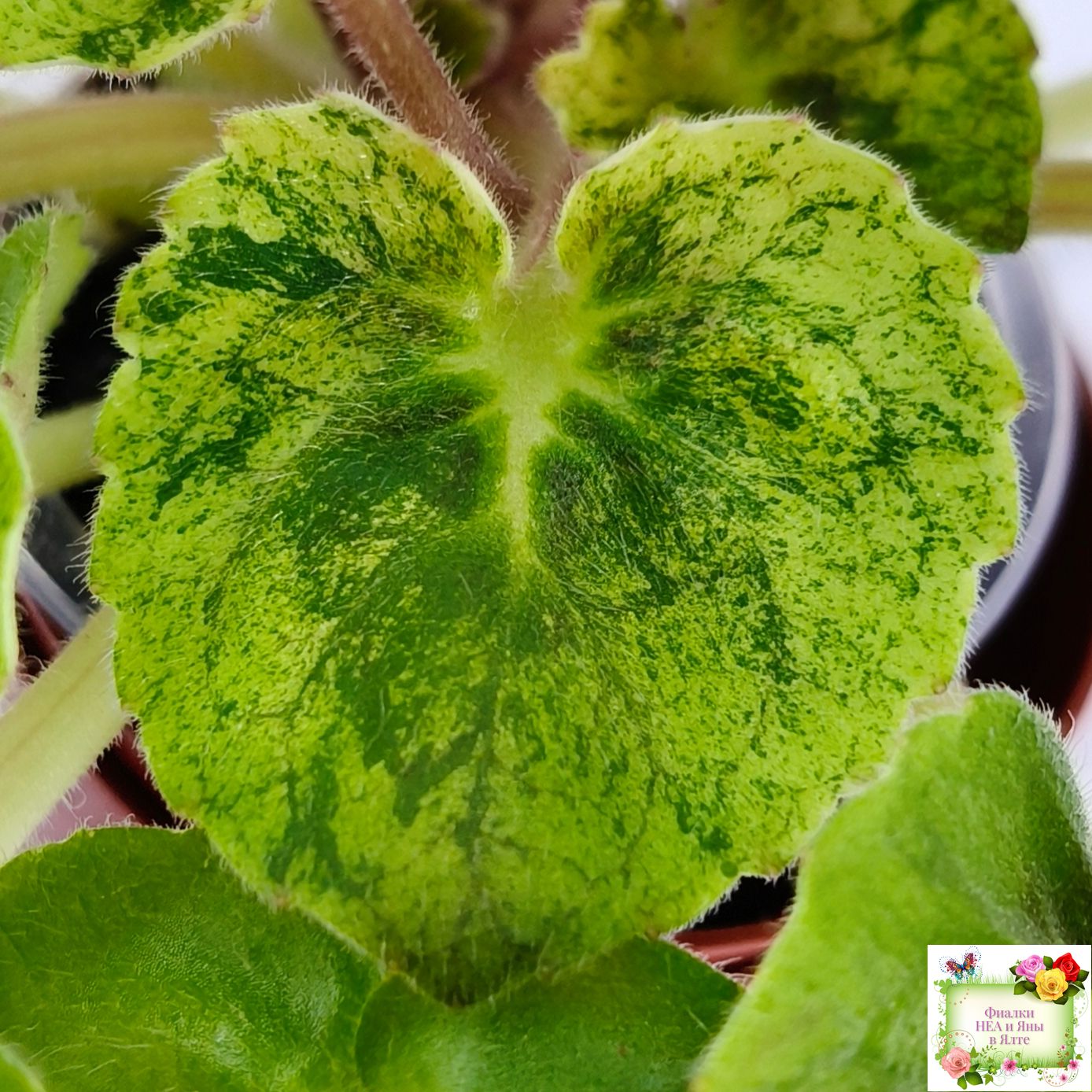 Розетка: Светло-зелёный гёрл-лист с зубчатым краем в форме сердечка и яркой жёлтой кроновой пестролистностью.