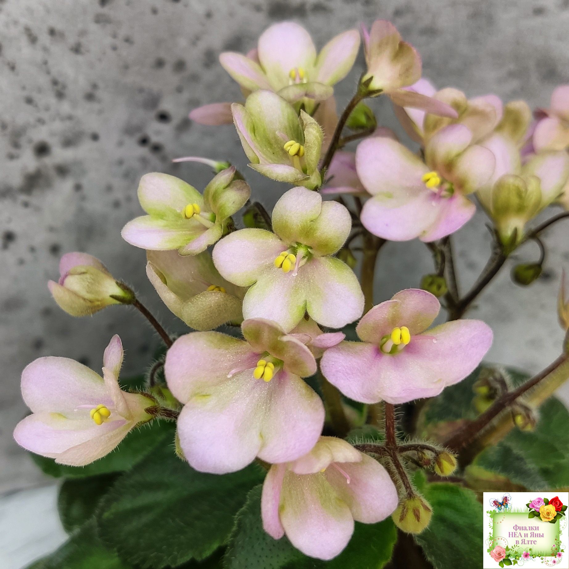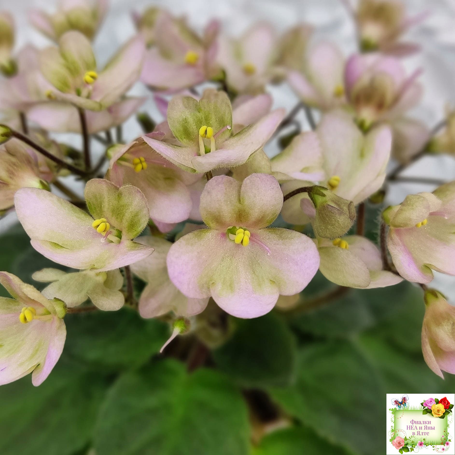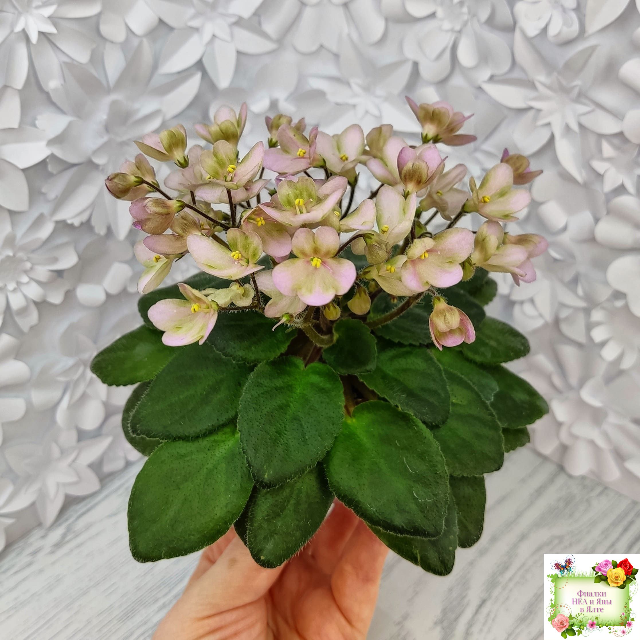 Розовые бутоны с напылением лавандового фэнтези и зеленой каймой. Зубчатая темно-зеленая листва с заостренной поверхностью и острым кончиком. Мини