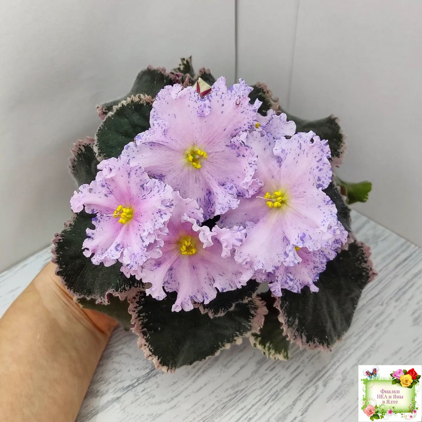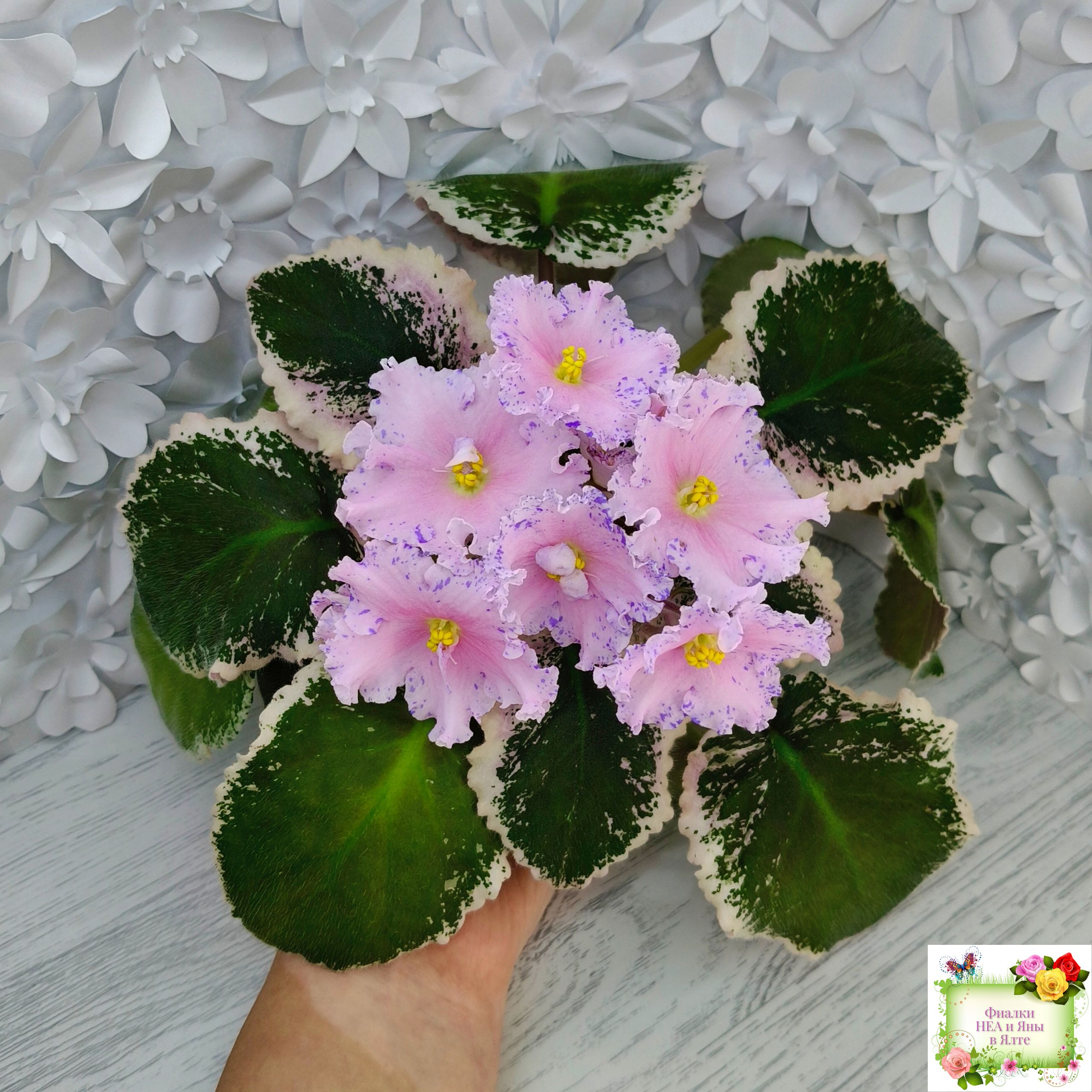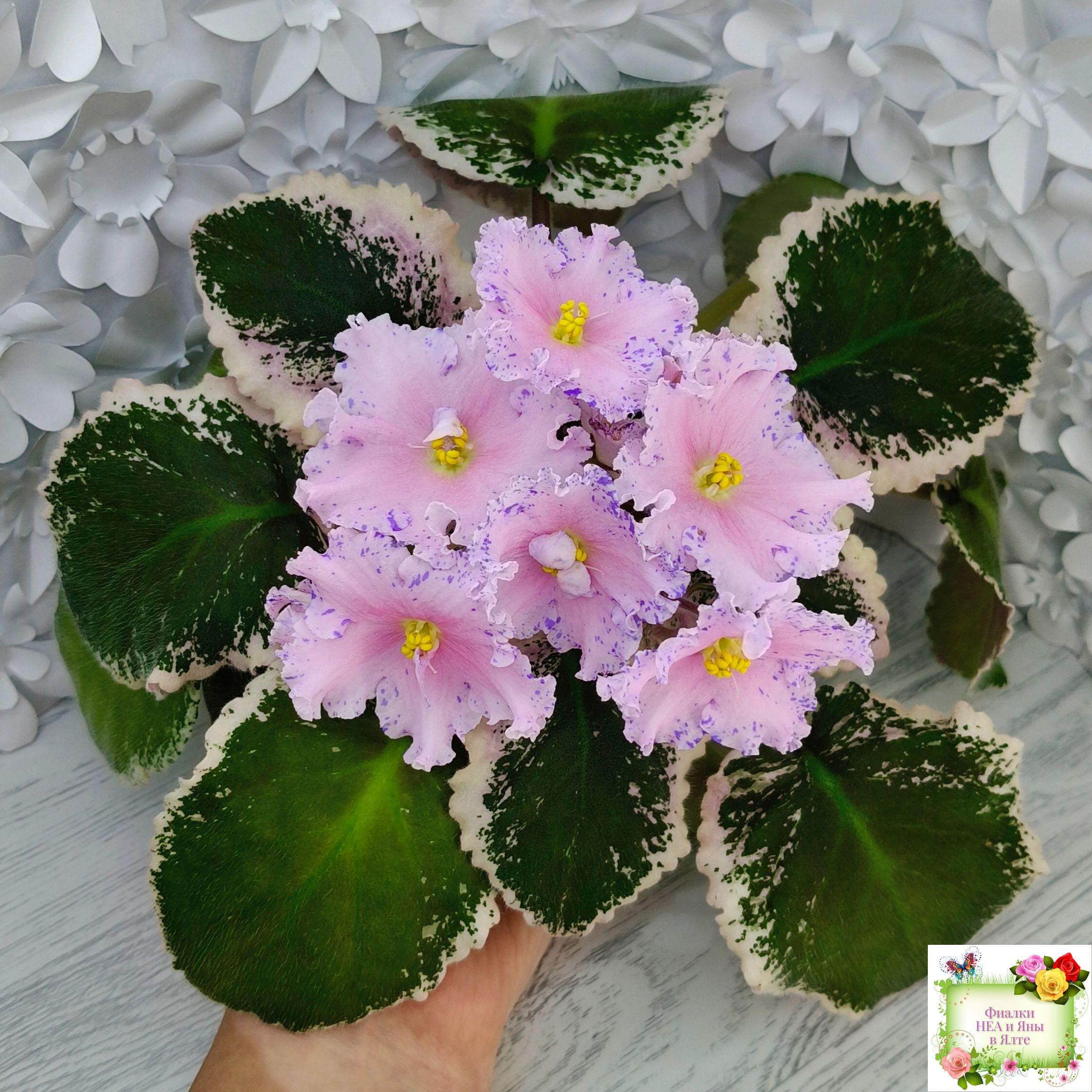 Розетка: Темно-зеленые фестончатые листья с розовой окаймляющей пестролистностью.