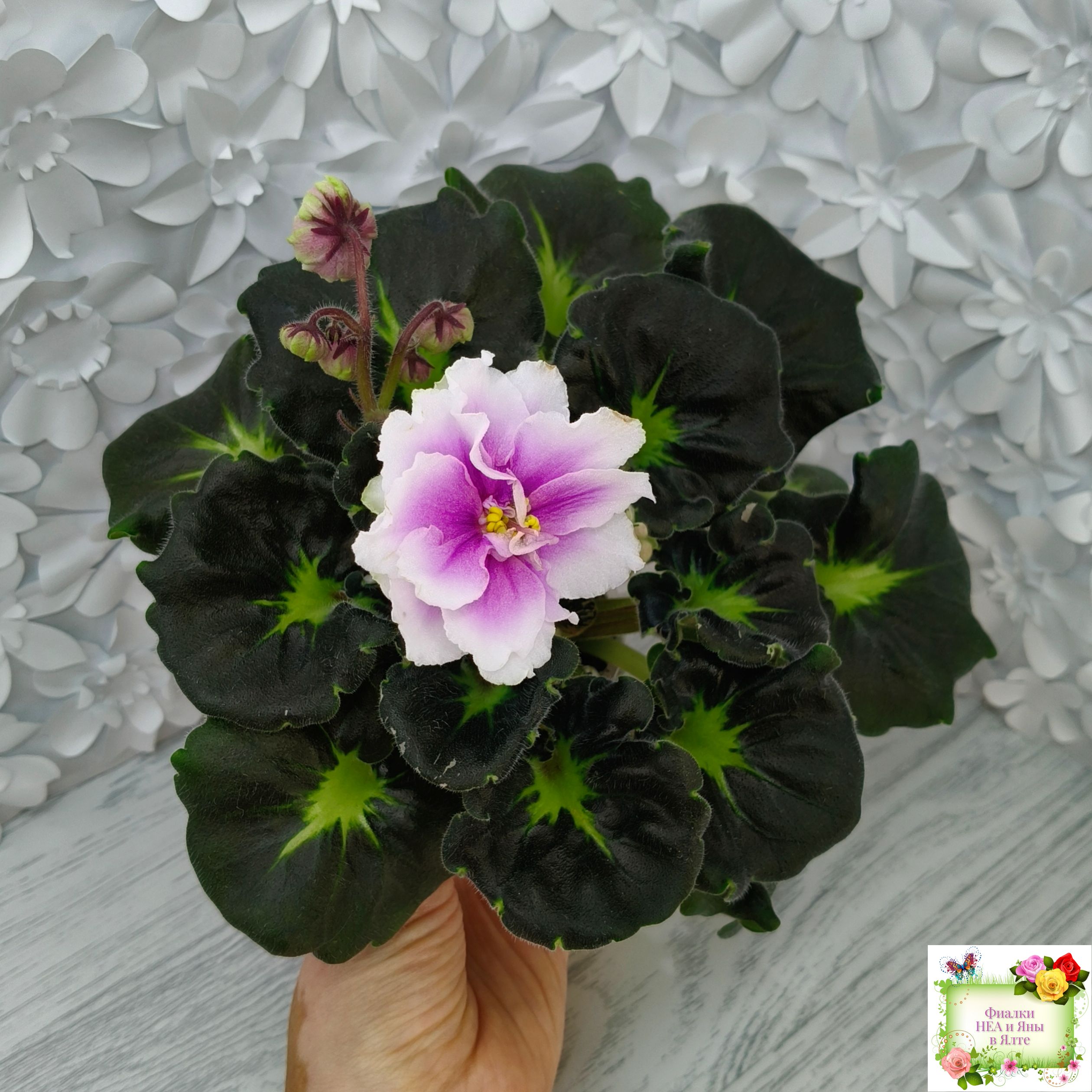 Многослойные обильные белые цветы с фуксиевым центром на шикарной пестрой розетке герл листьев. Цветы среднего размера, цветение продолжительное, розетка стандартная.