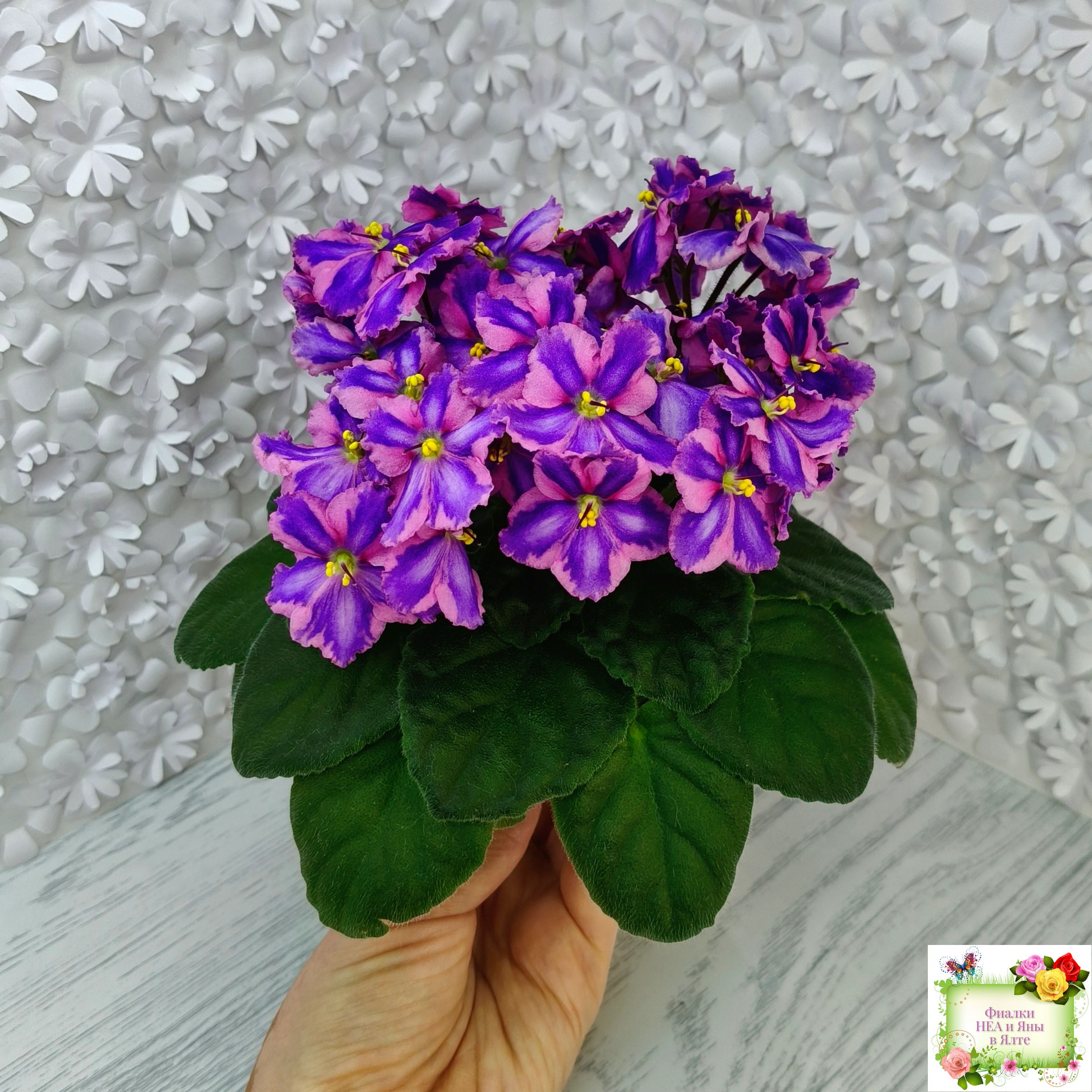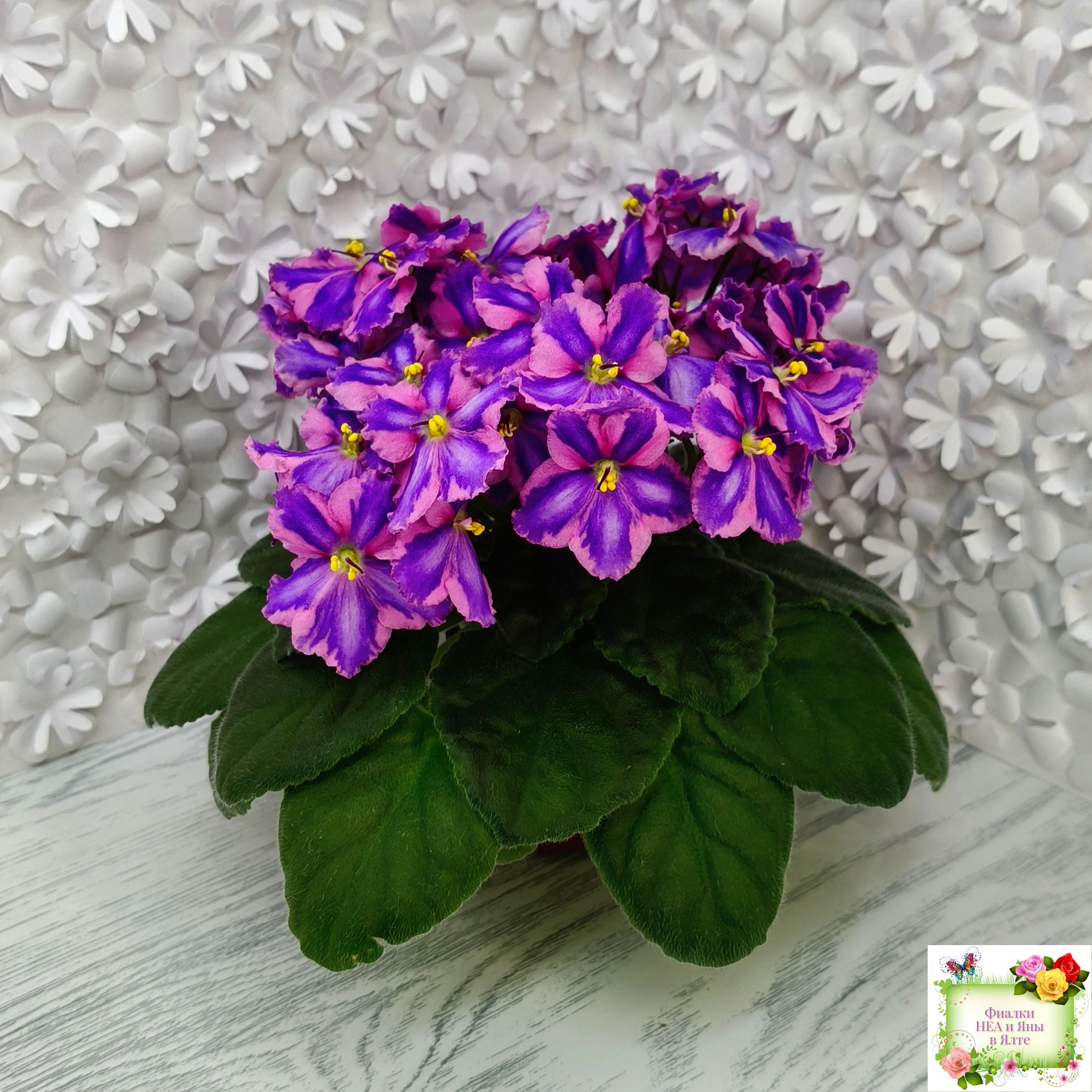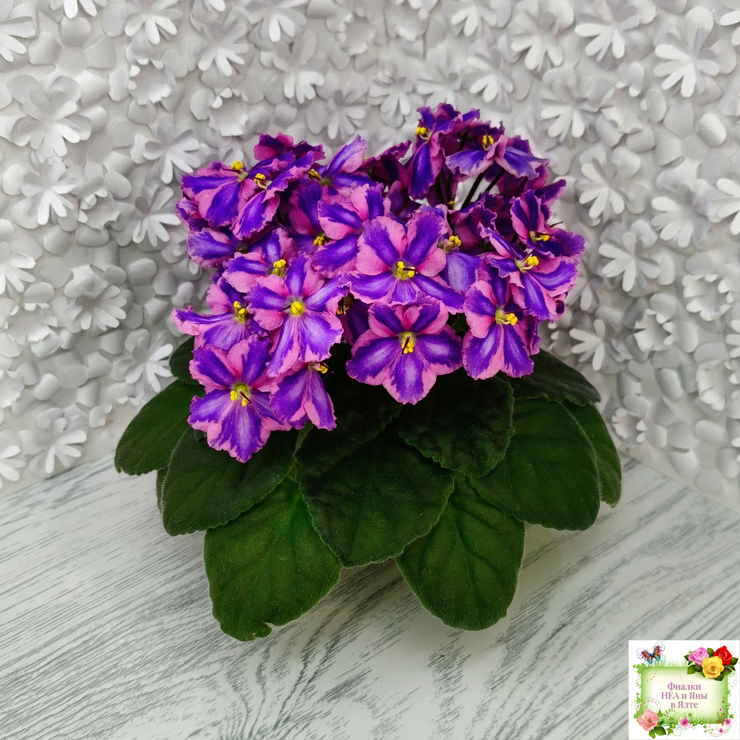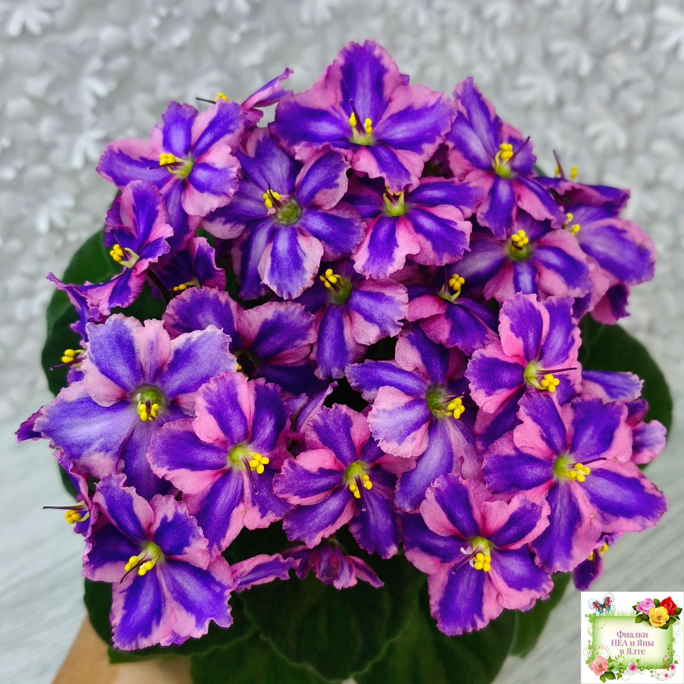 Невероятный трехцветный каскад цветов - по розовому фону светло сиреневые химерные полосы, по центру каждой полосы белая химерная полоса - "химера в химере". Маленькая розетка светлых листьев, постоянное шапочное цветение. Химера сказка! Исходник - химера Паркер. Стандарт.