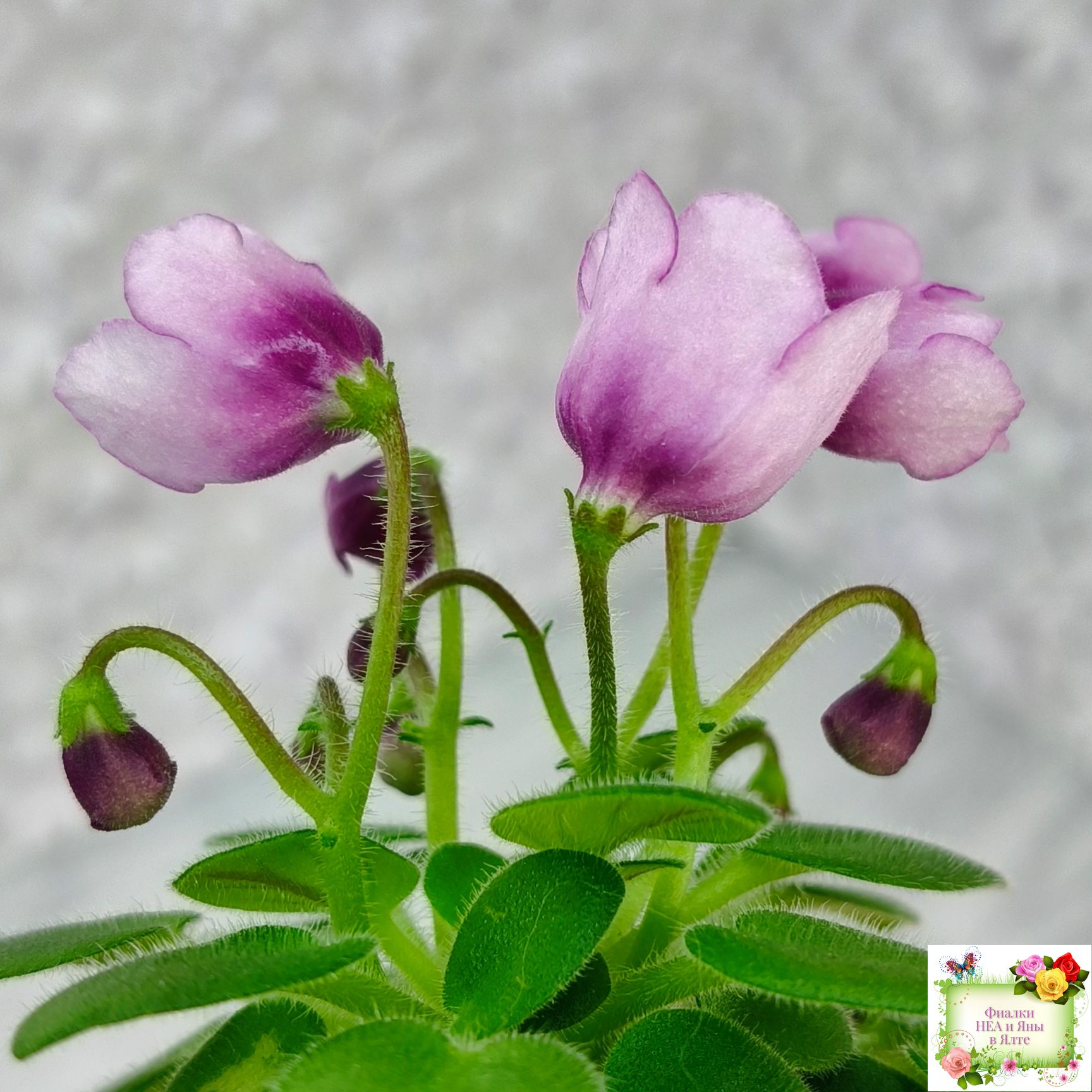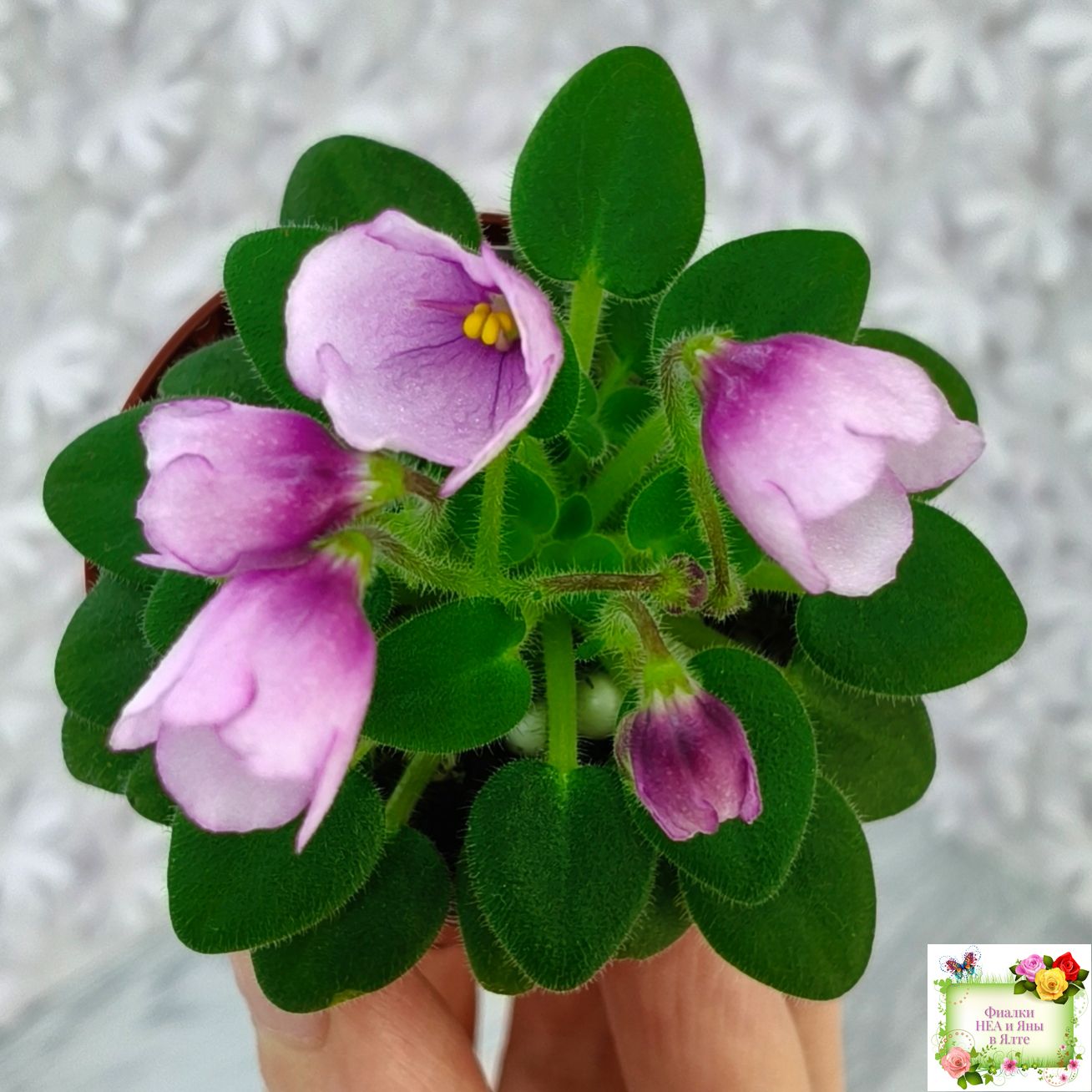 Обильные кремово-белые нераскрывающиеся колокольчики-дудочки с плавно таящим пурпурным глазком. Температурозависимый. Листва зеленая остроконечная. Мини.