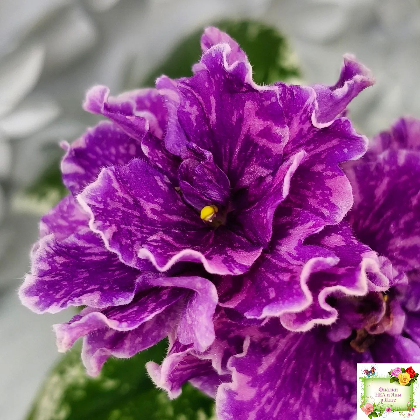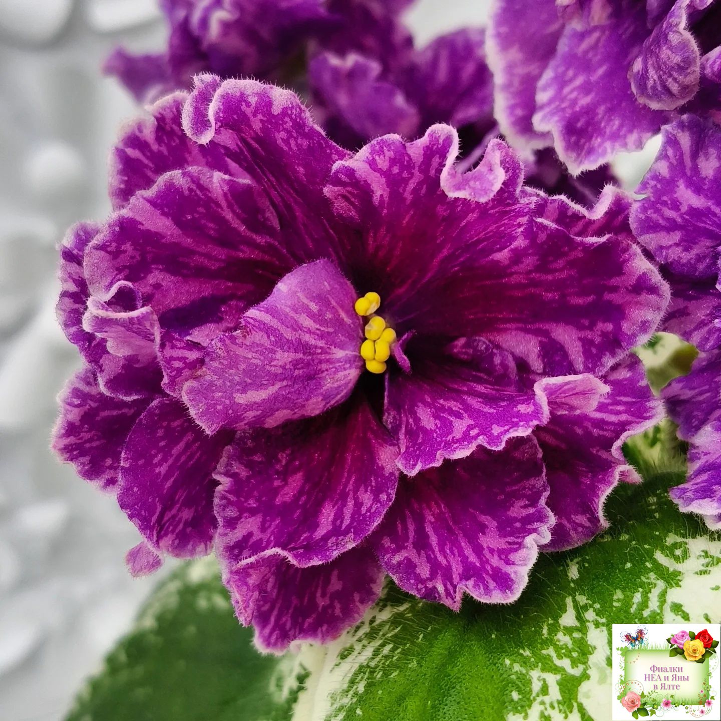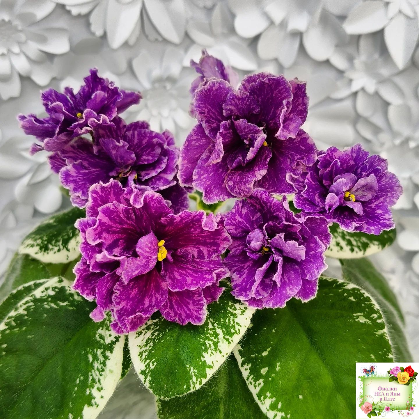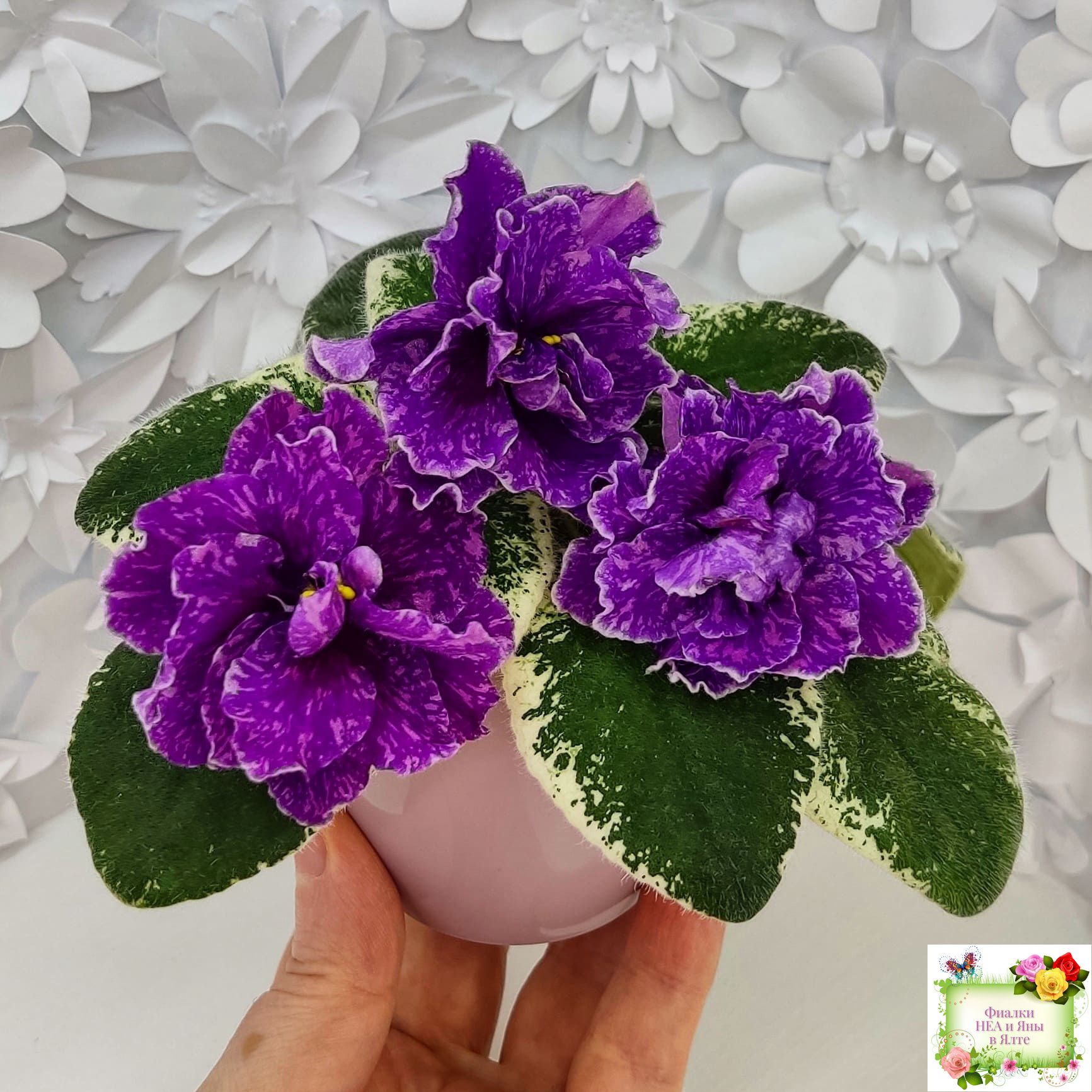 Цветы: Полумахровые и махровые фуксиевые цветы с розовыми штрихами по цветку, белая волнистая кайма по краям лепестков. Цветоносы плохо держат букет, слабоваты.